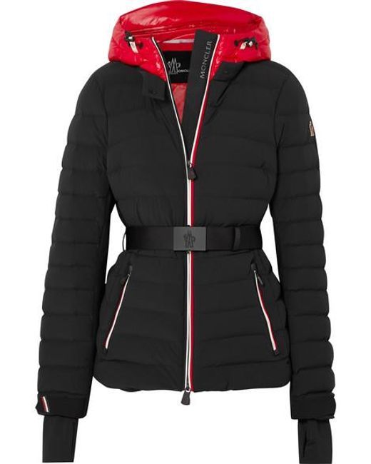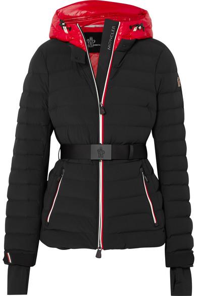 Damen Bruche Zweifarbige Gesteppte Skijacke Mit Gürtel in schwarz