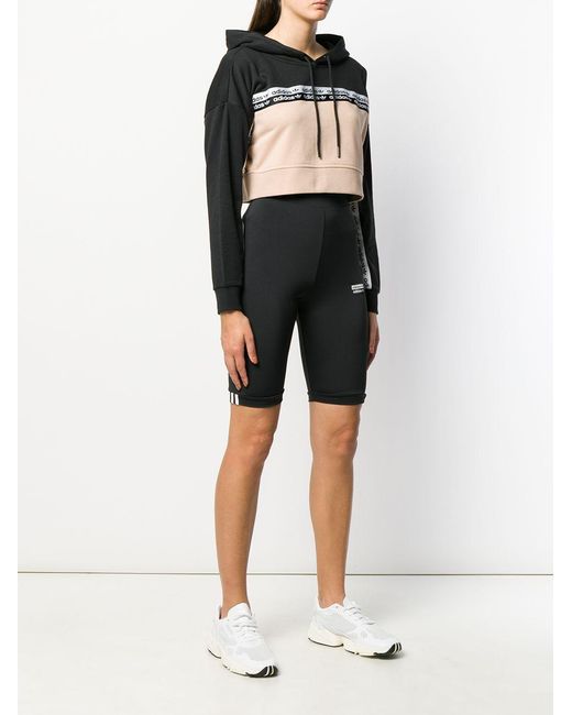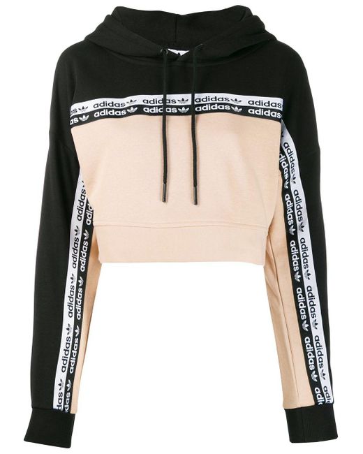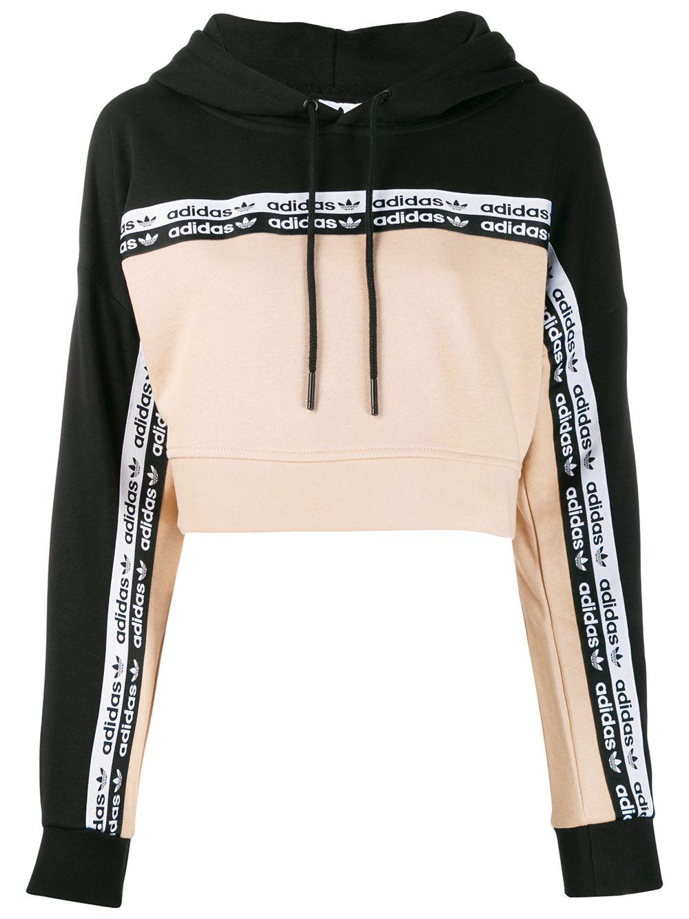 Kapuzenpullover mit Logo-Streifen aus Baumwollgemisch von adidas. Merkmale: Kapuze mit Kordelzug, lange Ärmel, gekürzte Länge und gerippte Abschlüsse. POSITIVELY CONSCIOUS: Dieses Piece besteht aus Materialien, die unseren Planeten weniger belasten. Sieht nicht nur gut aus, sondern ist auch noch gut für die Umwelt. Farbe: schwarz
