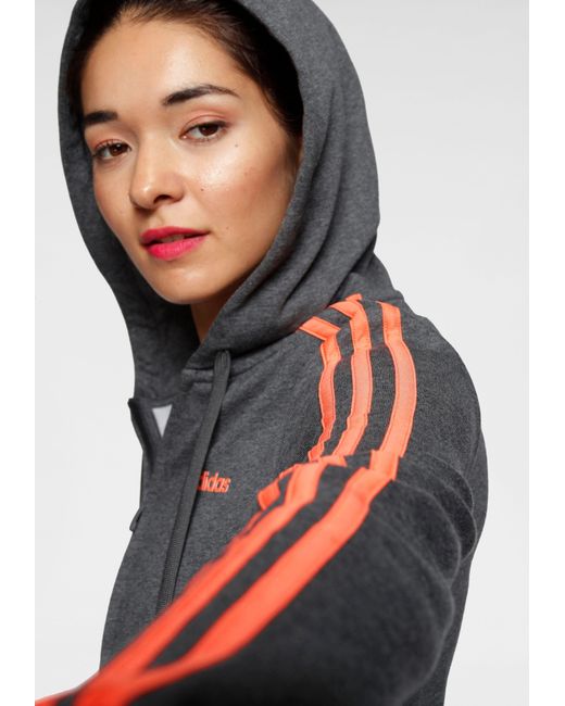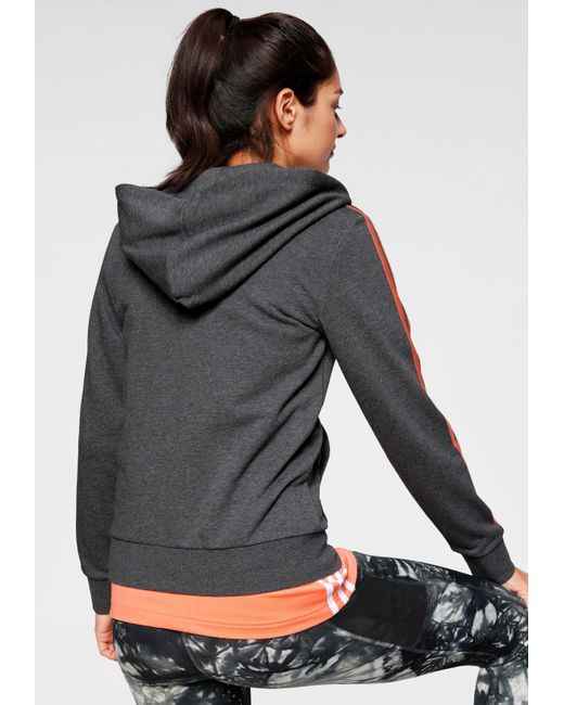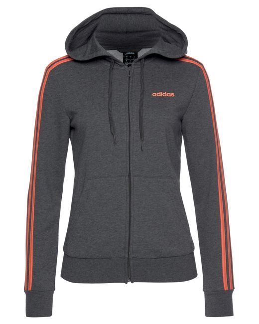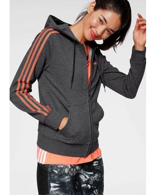Damen Kapuzensweatjacke »ESSENTIALS 3 STRIPES FULL ZIP HOODIE« in grau