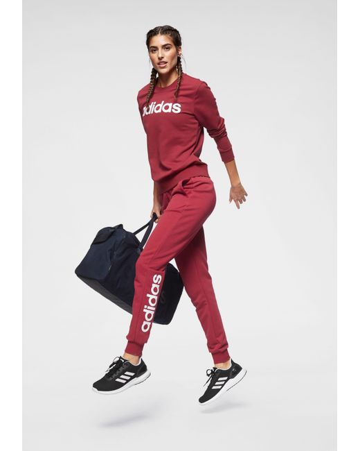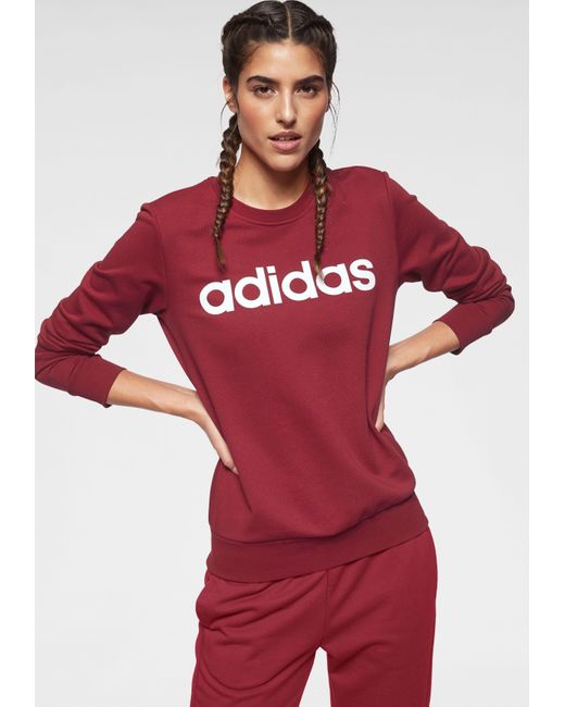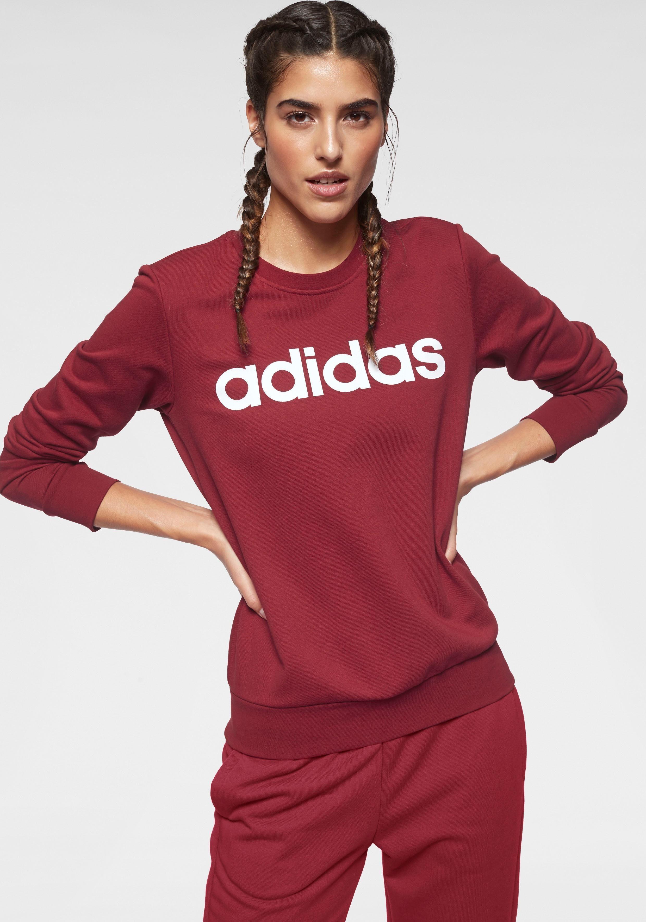 Lebe deinen Lifestyle, ob beim Sport oder in der Freizeit: mit dem Sweatshirt von adidas Core Sport. Der große Markenschriftzug auf der Vorderseite des Pullovers setzt dabei das richtige Statement. Superbequem: Der Rundhalsausschnitt, die breiten Bündchen und die figurbetonte Passform sorgen für den optimalen Sitz und hohen Komfort des Damenshirts. Kombiniere es mit deiner Lieblingsjeans, das Langarmshirt hält dich aber auch ideal vor und nach deinem Training warm. Vielseitig gut aussehen, mit dem Sweatshirt von adidas Core Sport. Farbe: rot