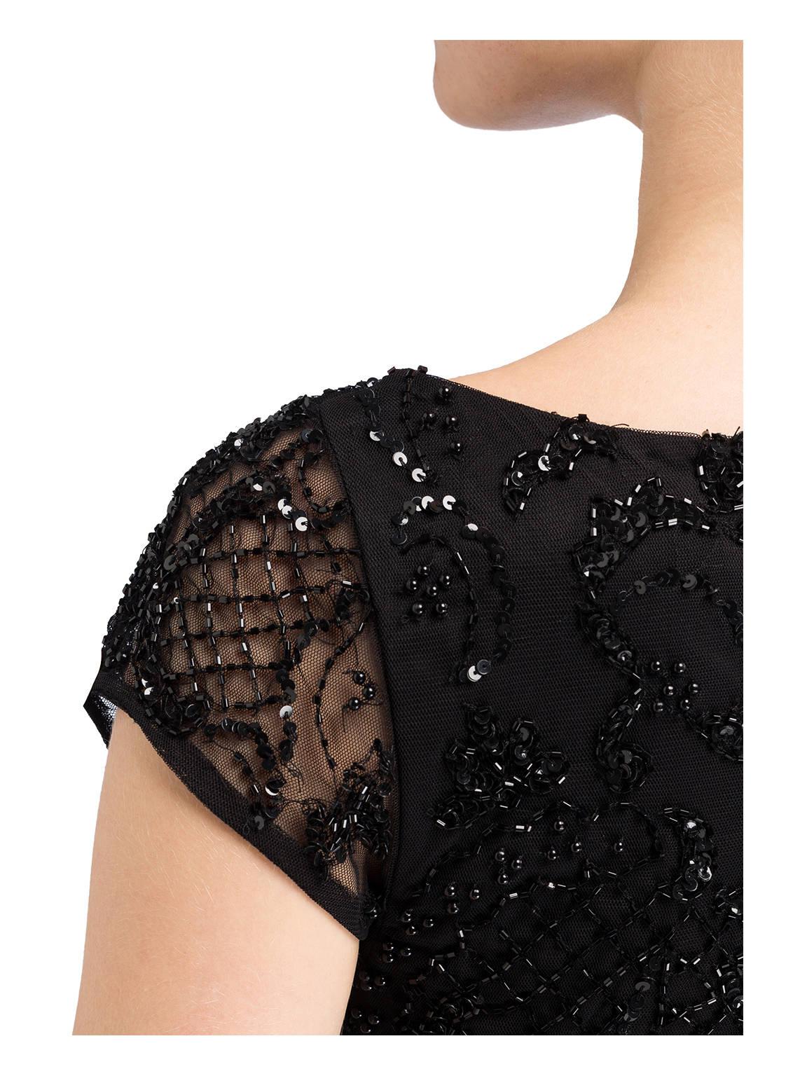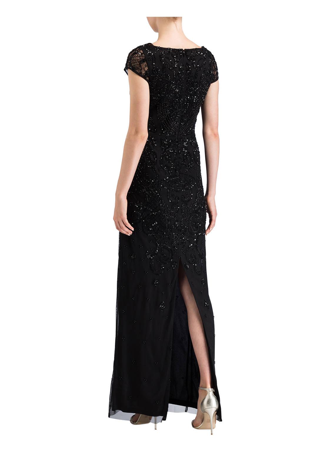 Weiter zu BreuningerDieser wunderbare Abendbegleiter von ADRIANNA PAPELL ist an Stil nicht zu übertreffen. Die schmale Passform mit Gehschlitz hinten unterstreicht Ihre feminine Silhouette auf wunderbare Art und Weise. Ein besonderes Finish bekommt das Kleid durch die funkelnden Pailletten- und Schmuckperlen im tonalen Design. Kreieren Sie elegante Looks! Details: Taillierter Schnitt. Tiefer Rundhalsausschnitt. Flügelärmel. Schließt mit nahtfeinem Reißverschluss in der hinteren Mitte. Gehschlitz hinten. Funkelnder Pailletten- und Schmuckperlenbesatz im tonalen Design. Maße bei Größe 36: Gesamtlänge ab Schulter: 155 cm. Brustweite: 82 cm. Taillenweite: 72 cm. Farbe: schwarz