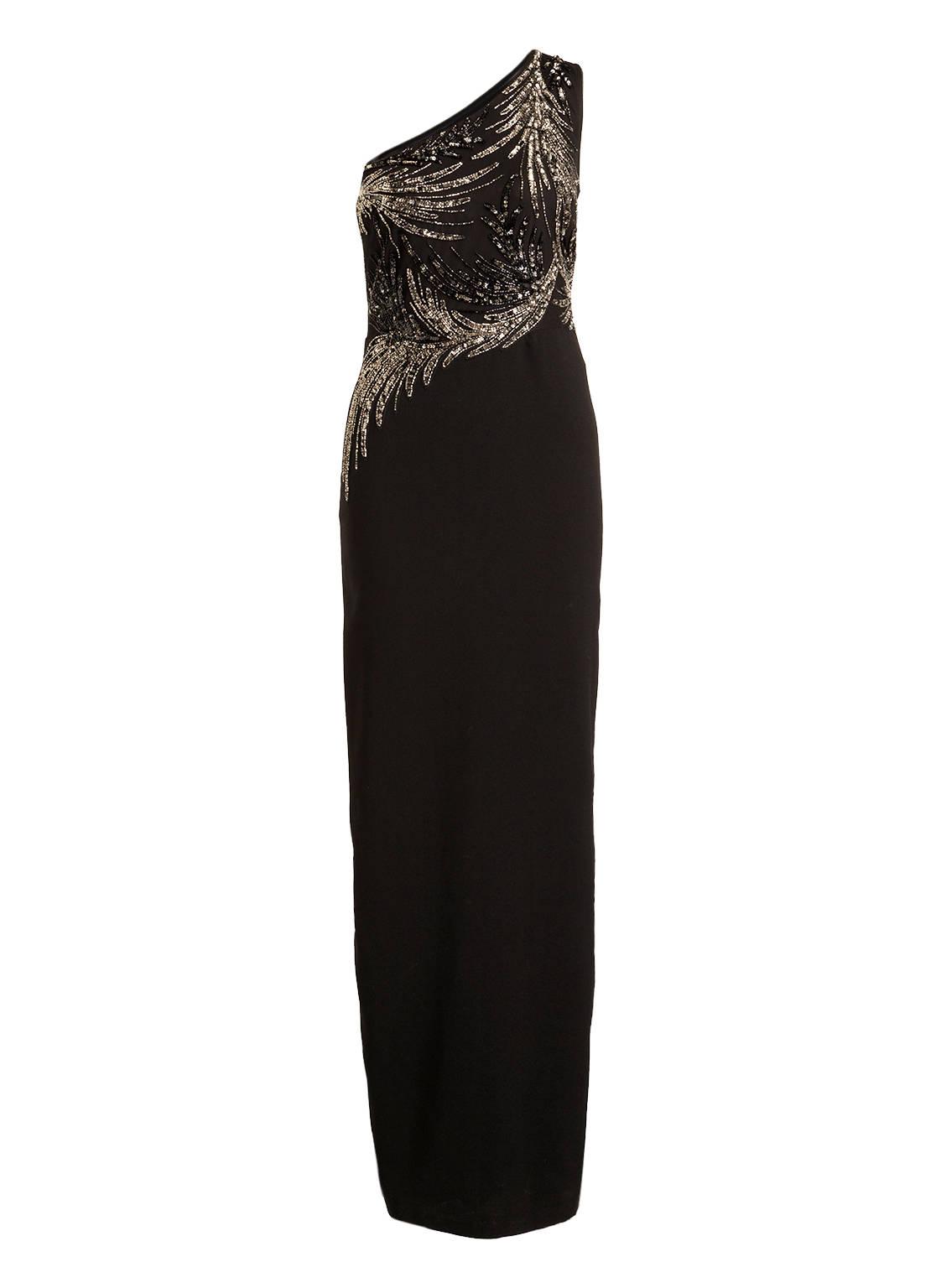Weiter zu BreuningerFreuen Sie sich auf glamouröse Abende mit dem One-Shoulder-Kleid von ADRIANNA PAPELL! Das exquisite Design zeigt sich mit einer fließenden Rockpartie und einem verführerischen Gehschlitz in der hinteren Mitte. Ein reizender Paillettenbesatz am Oberkörper rundet das elegante Modell ab. Genießen Sie luxuriöse Momente! Details: Taillierter Schnitt. One-Shoulder-Design. Schließt mit nahtfeinem Reißverschluss in der Seite. Oberteil mit Paillettenbesatz. Komplett gefüttert. Gehschlitz in der hinteren Mitte. Maße bei Größe 36: Gesamtlänge ab Schulter: 150 cm. Brustweite: 82 cm. Taillenweite: 72 cm. Farbe: schwarz