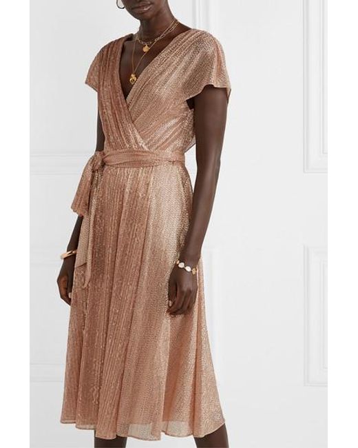 Damen Darva Kleid Aus Lamé Mit Wickeleffekt in braun