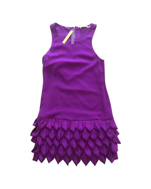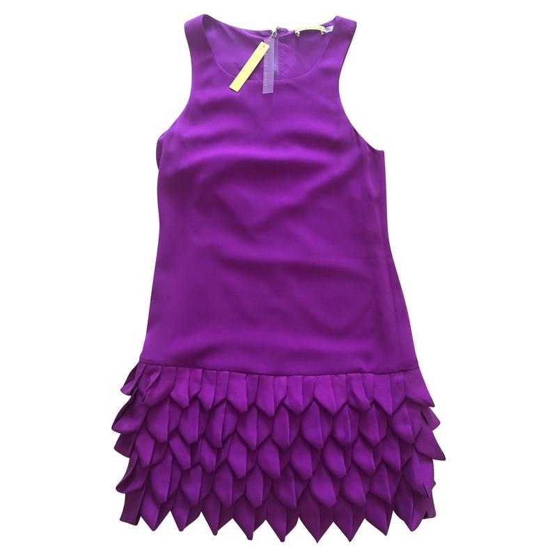 Seidenkleid von Alice + Olivia in bright violet in der Größe 2 (36 /S). 95 % Seide 5 % Spandex Maße: Gesamtlänge: 88 cm Brustweite: 40 cm Das Kleid ist gerade geschnitten und fällt Figur umspielend. Durch das Unterkleid ist es blickdicht. Der gerade Schnitt und die "Federn" am Saum erinnern an die goldenen 20er. Die leuchtende Farbe und der Saum sind ein Hingucker, leider hat mir der Anlass gefehlt um es auszuführen. Es ist ungetragen und wartet auf die neue Besitzerin NP $396. Farbe: lila