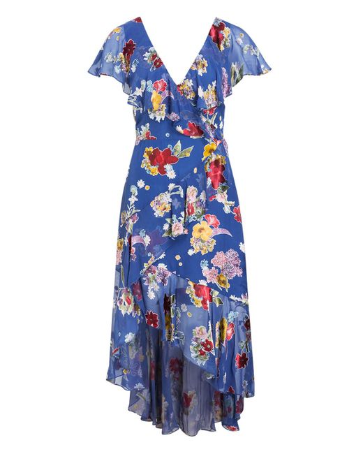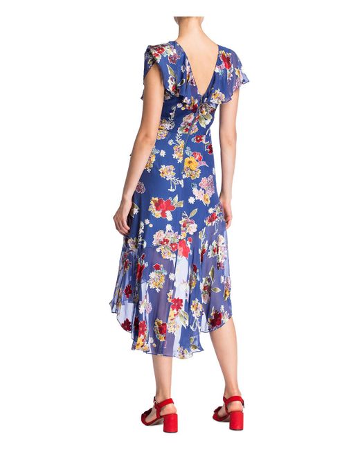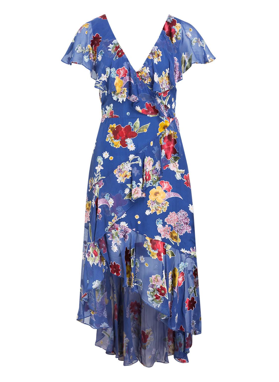Ein traumhafter Anblick: das Kleid ELECTRA von alice+olivia! Es erwarten Sie neben einer floralen Allover-Musterung ein asymmetrischer Saum sowie ein Volant-Besatz am V-Ausschnitt, der Ihre weiblichen Kurven zart und liebevoll umspielt. Die taillierte Linie verleiht Ihrer Silhouette einen zusätzlichen femininen Touch. Verzaubern Sie! Taillierter Schnitt. V-Ausschnitt mit Volant-Besatz. Schließt mit nahtfeinem Reißverschluss in der hinteren Mitte. Gefütterte Verarbeitung. Asymmetrischer Saum. Florale Allover-Musterung. Maße bei Größe 36:- Gesamtlänge ab Schulter: 140 cm- Brustweite: 78 cm- Taillenweite: 70 cm. Farbe: blau