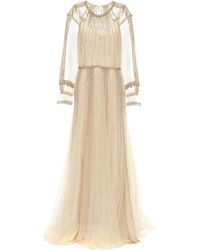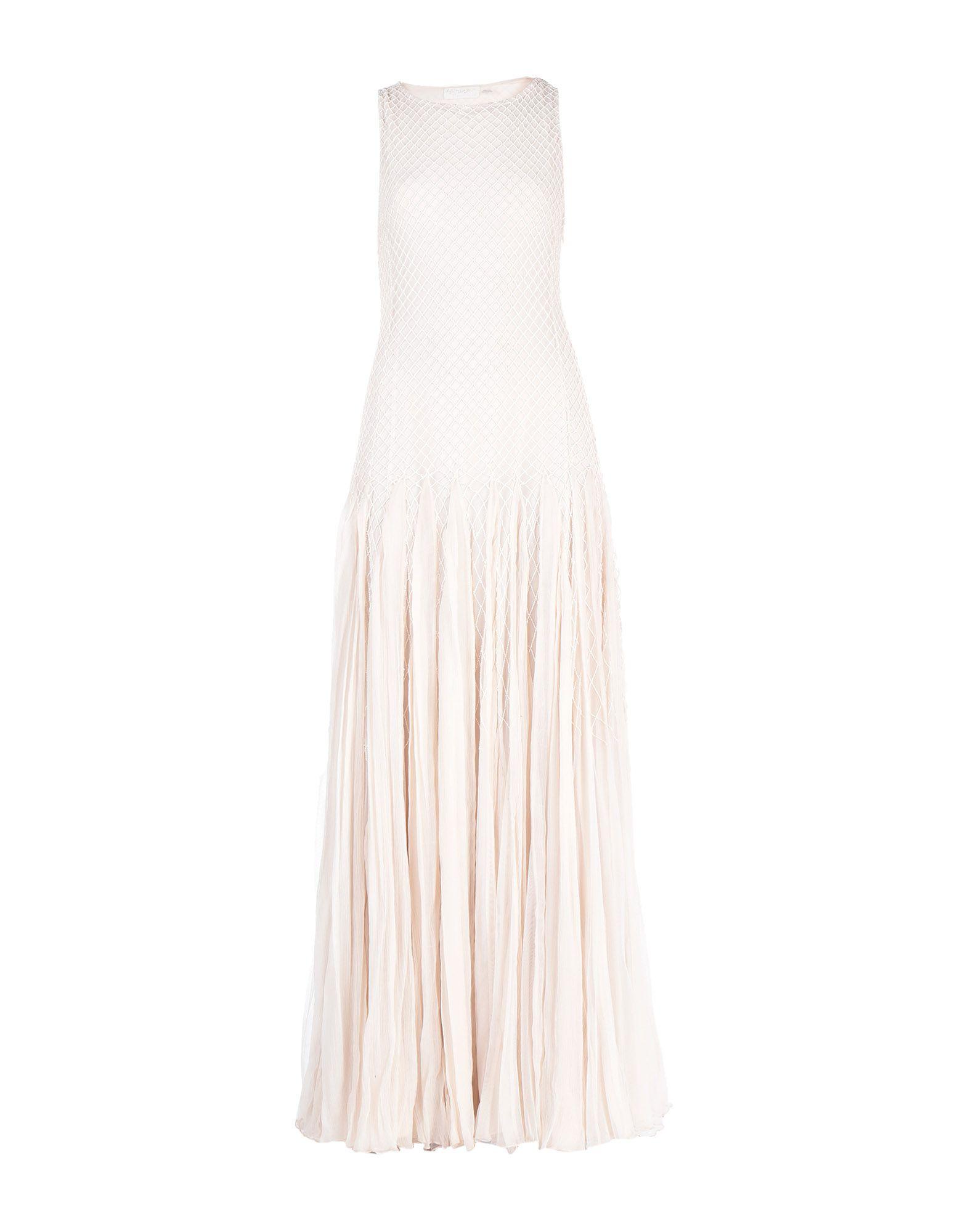 Tüll, Krepp, Perlen, einfarbig, Rundhalsausschnitt, ärmellos, ohne Taschen, seitlicher Verschluss, Reißverschluss, gefüttert, Kleid. 100% Nylon, Viskose. Farbe: natur