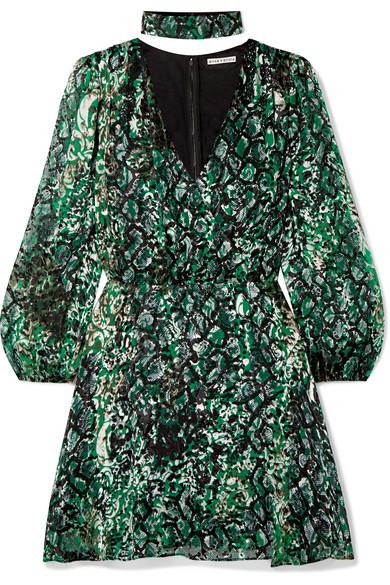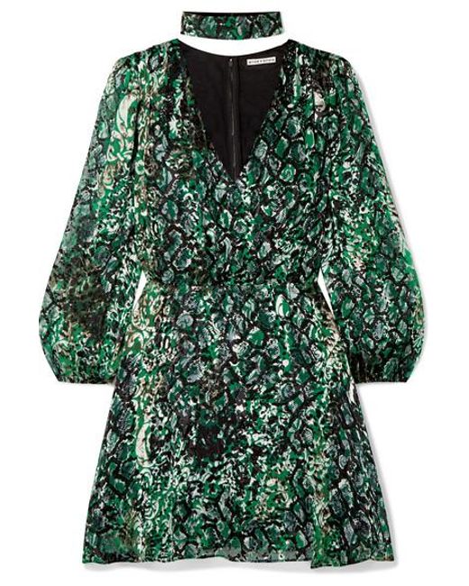 Laut PorterEdit lassen sich Animal-Prints mit unerwarteten Farben ideal aufpeppen – das "Rita" Minikleid mit Leoparden. Und Schlangenmotiven von Alice + Olivia ist der Beweis dafür. Es besteht aus leichtem Chiffon mit Fil Coupé und hat einen abnehmbaren Kragen. Stylen Sie es mit ebenso auffälligen Sandalen. Hier gezeigt mit: Mehry Mu Tote, Malone Souliers Sandalen, Chan Luu Kette. Mehrfarbiger Chiffon mit Fil Coupé. Reiß. Und verdeckter Hakenverschluss hinten. 54 % Viskose, 46 % Seide; Futter: 94 % Polyester, 6 % Elastan. Trockenreinigung. Farbe: grün