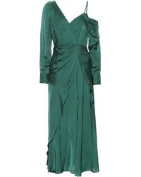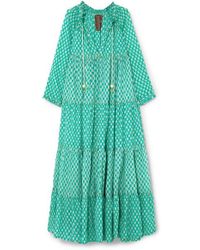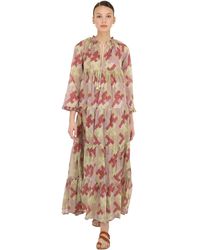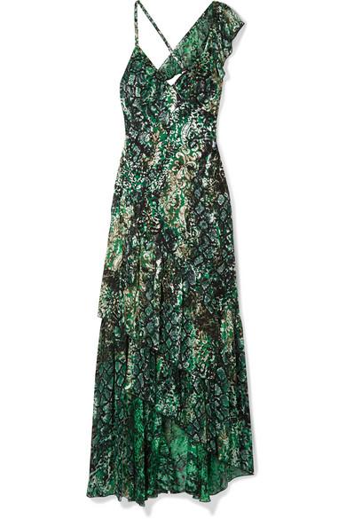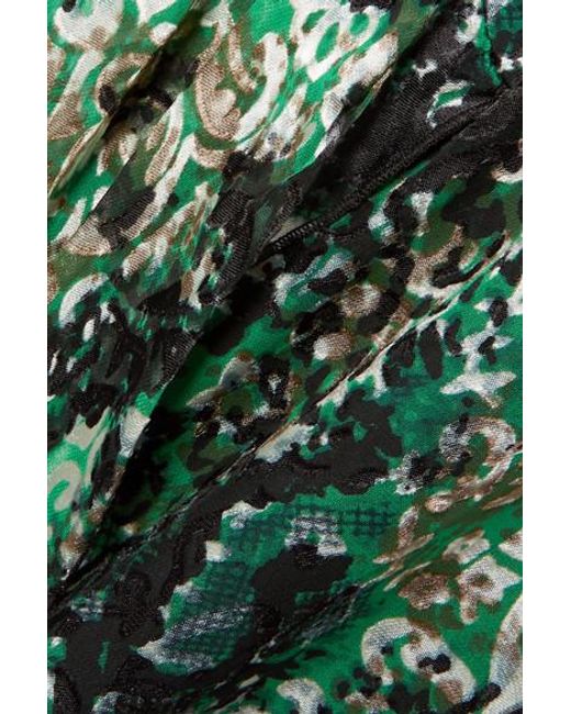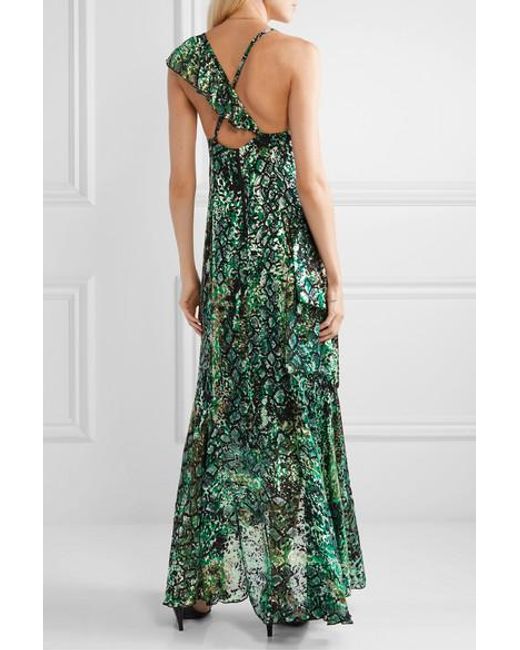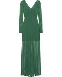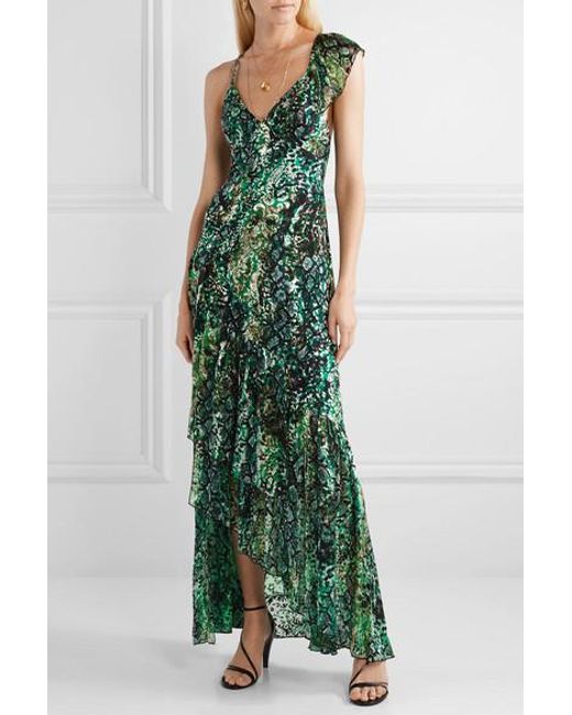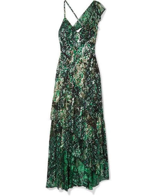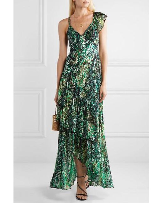 Damen Shanel Gerüschtes Maxikleid Aus Bedrucktem Chiffon Mit Fil Coupé in grün