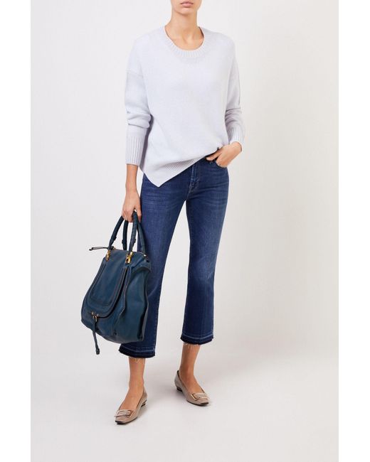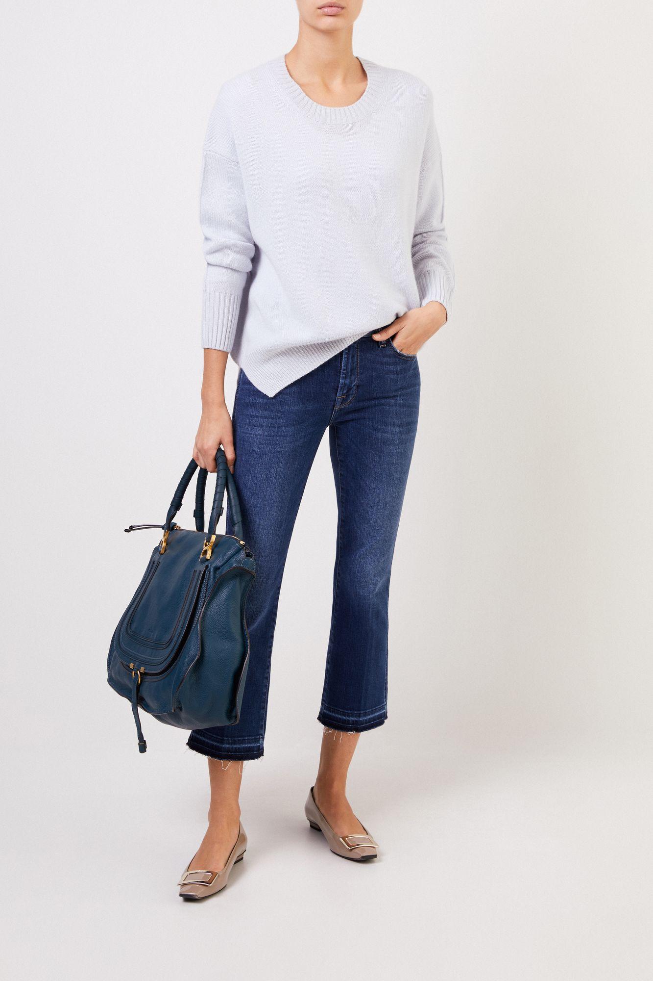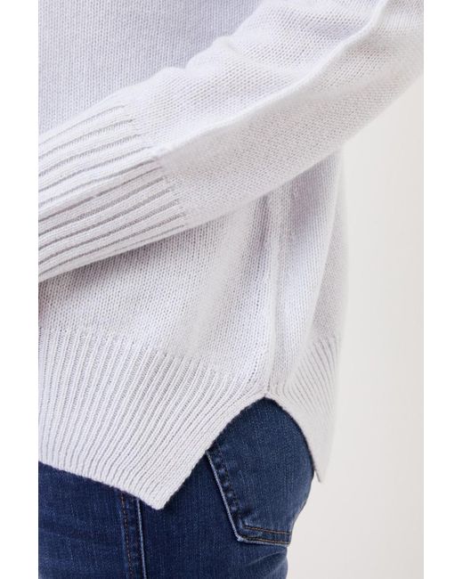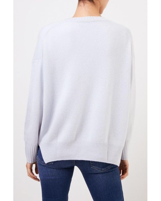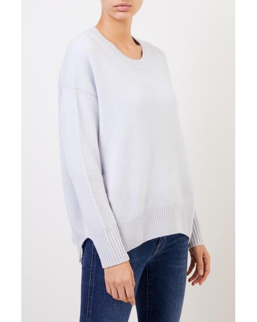 Pullover in Hellblau. Rundhalsauschnitt. Lange Ärmel. Gerippte Säume. Seitlicher Schlitz. Lockere Silhouette. Auf Gesäßhöhe endend. Größe des Models: 176 cm. Material: 100% Cashmere. Farbe: blau
