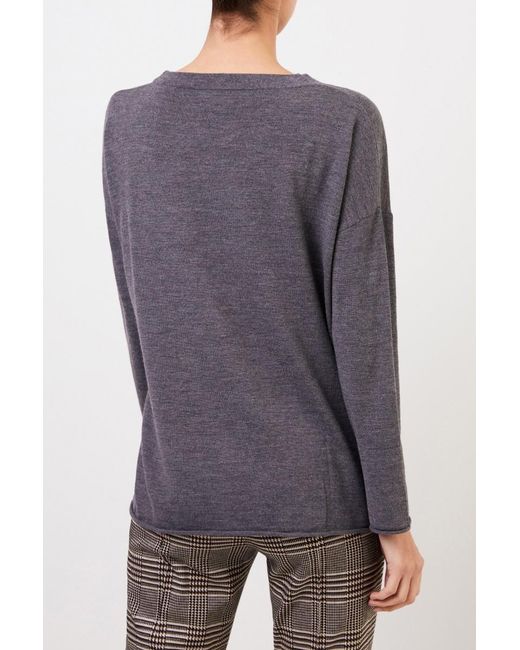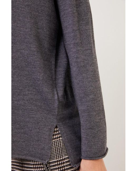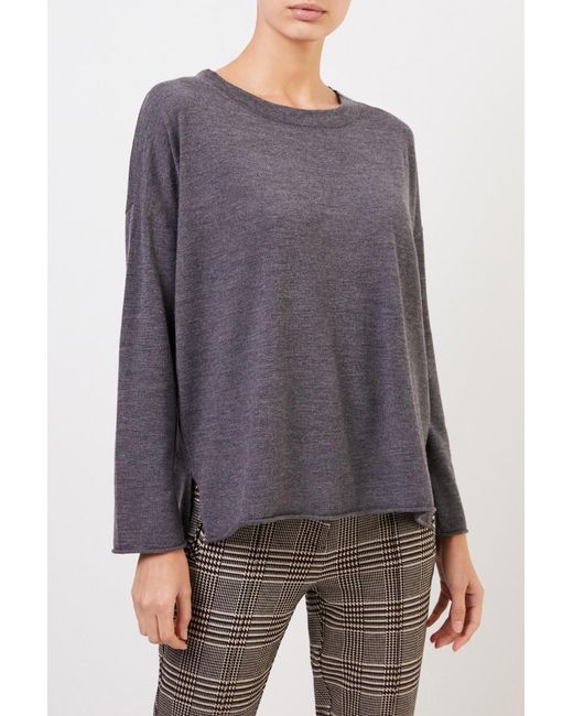 Pullover in Anthrazit. Rundhalsausschnitt. Lange Ärmel. Lockere Silhouette. Geschlitzer Saum. Auf Gesäßhöhe endend. Material: 100% Schurwolle. Größe des Models: 176 cm. Farbe: grau