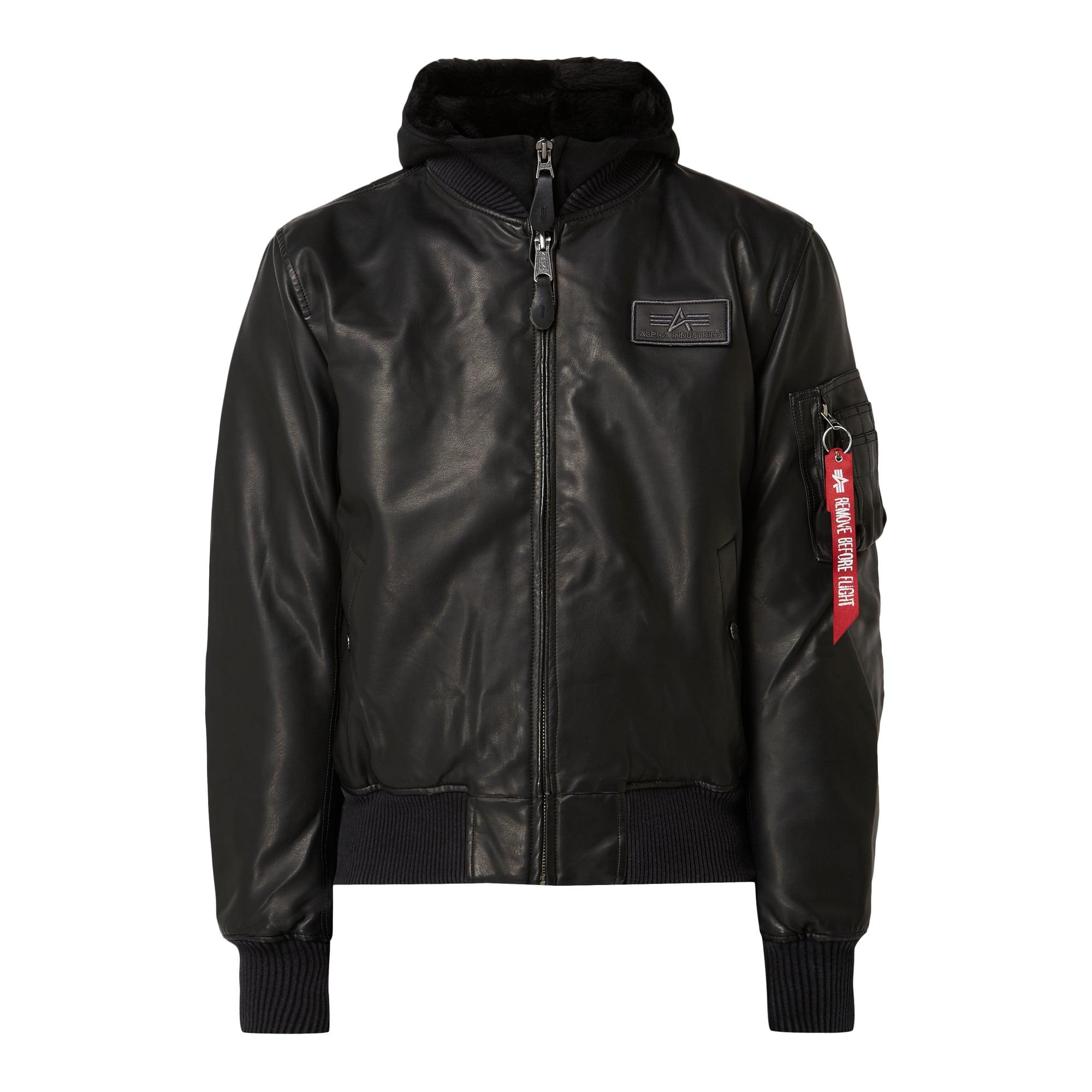 Der Bomber von Alpha Industries ist in Leder-Optik gehalten und gerade geschnitten. Er kommt mit Webpelzfutter an der Kapuze, verschiedenen Taschen und wärmender Wattierung. Bomber von Alpha Industries, Leder-Optik, Gerader Schnitt, Modell MA-1 D-Tec, Stehkragen, Reißverschluss , Abnehmbare Kontrastblende aus Sweat mit Kapuze und Webpelzfutter, Eingrifftaschen, Ärmeltasche , Gerippte Abschlüsse , Wärmende Wattierung , Rückenlänge bei Größe M: 61 cm, Schulterbreite bei Größe M: 47 cm, Ärmellänge bei Größe M: 68 c. Farbe: schwarz