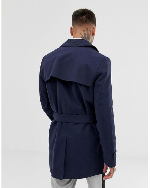 Herren Marineblauer, regenfester, doppelreihiger Trenchcoat