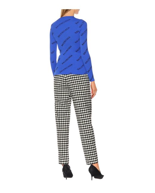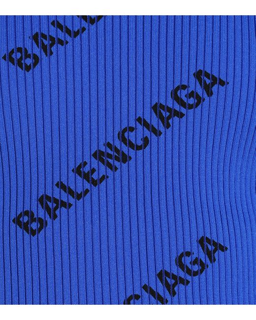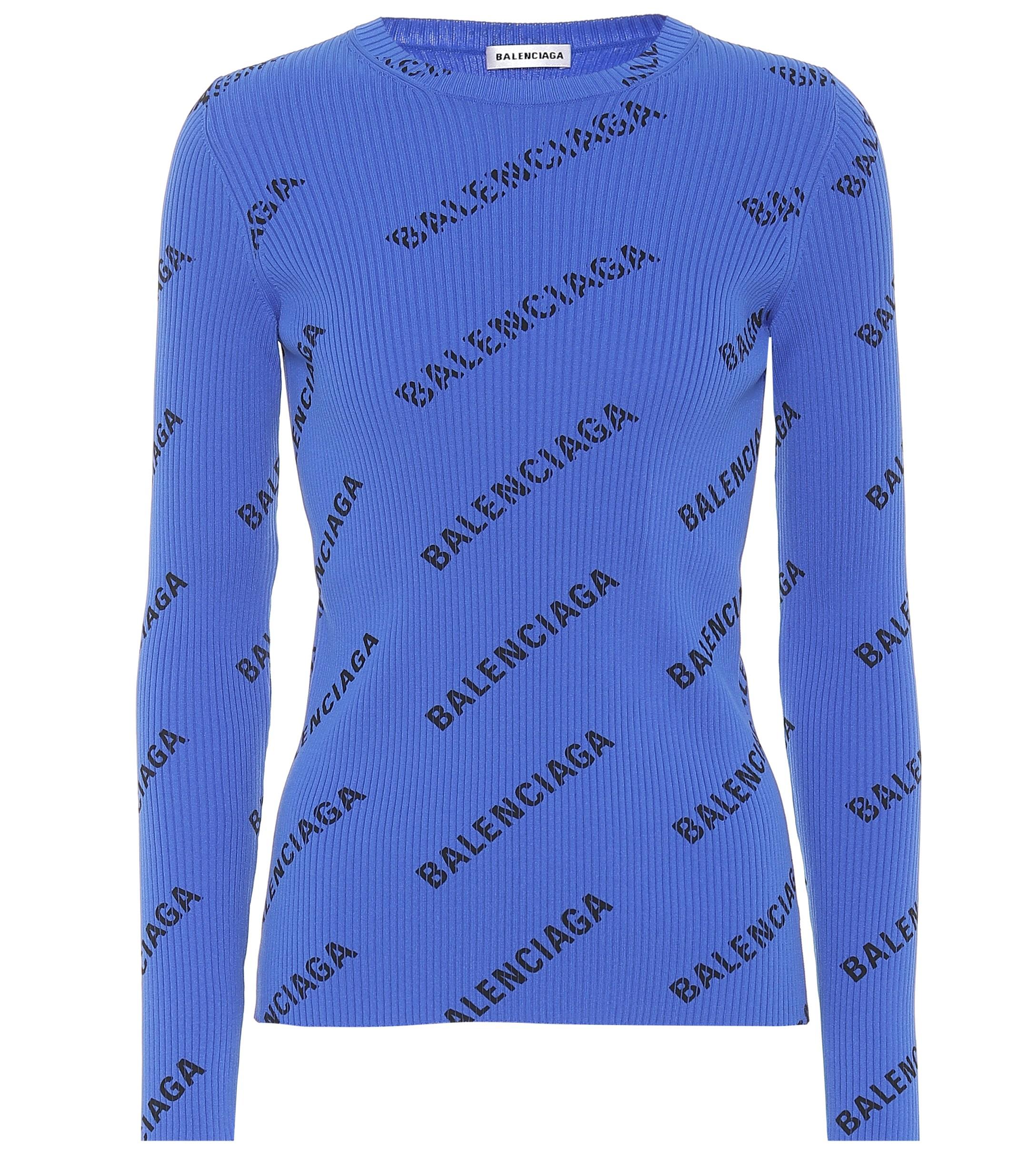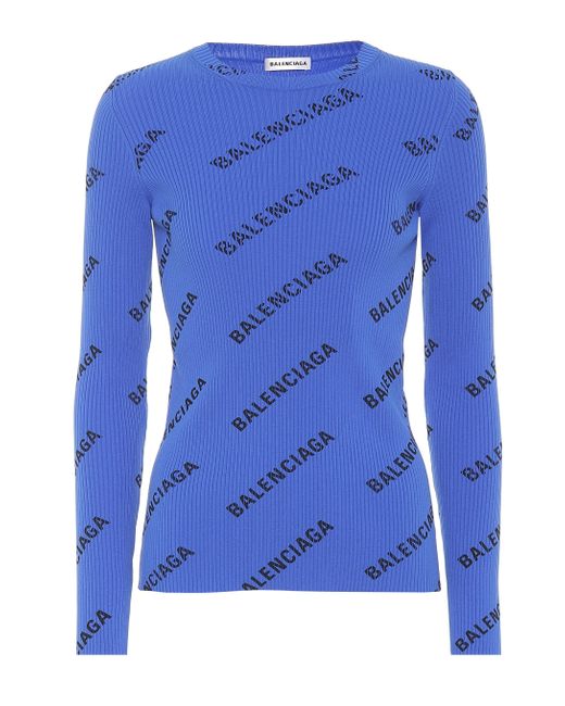 Dieser Pullover von Balenciaga wurde in Italien aus komfortablem Rippstrick in leuchtendem Königsblau gefertigt und allover mit dem Logo in Schwarz versehen. Farbe: blau