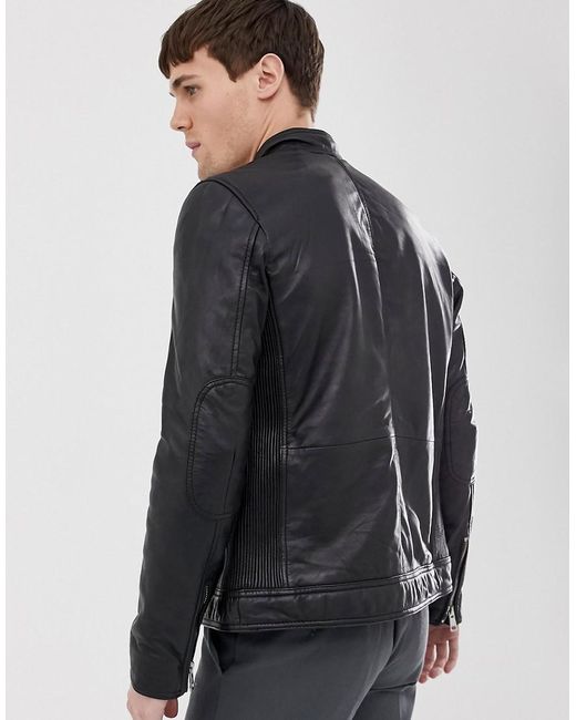 Lederjacke von Barney's Originals, für kühles, aber nicht kaltes Wetter, Rundhalsausschnitt, Reißverschluss, funktionale Taschen, Normale Passform, Bestelle einfach deine übliche Größe. Leder. Farbe: schwarz