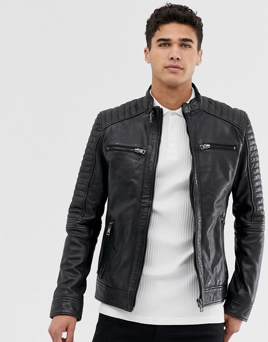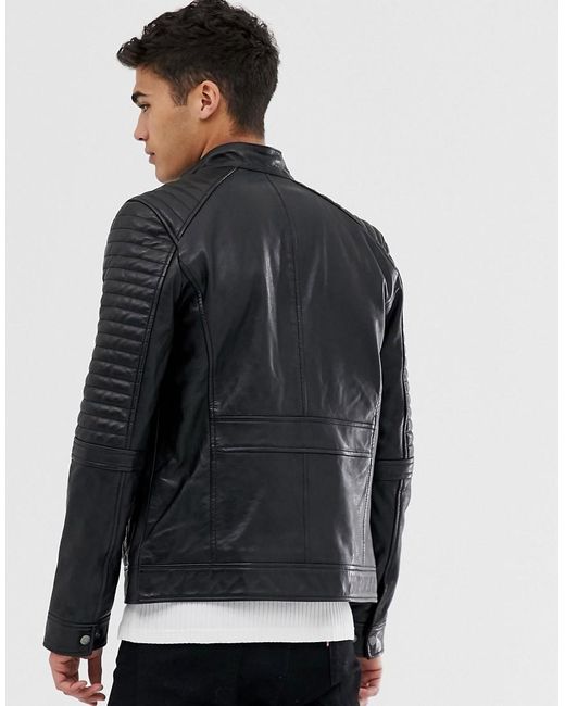 Bikerjacke von Barney's Originals, Die Suche nach deiner nächsten Trophäen-Jacke ist vorbei, runder Kragen mit Schnalle, Reißverschluss, genähte Ärmel, funktionale Taschen, Normale Passform, ein regulärer Schnitt für eine klassische Passform. Leder. Farbe: schwarz