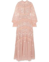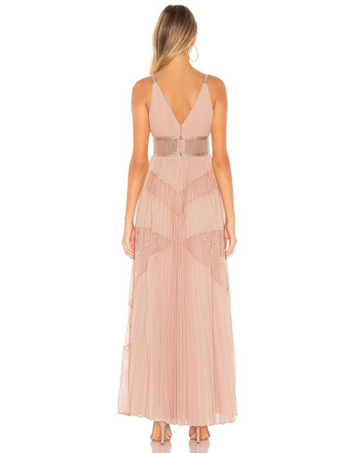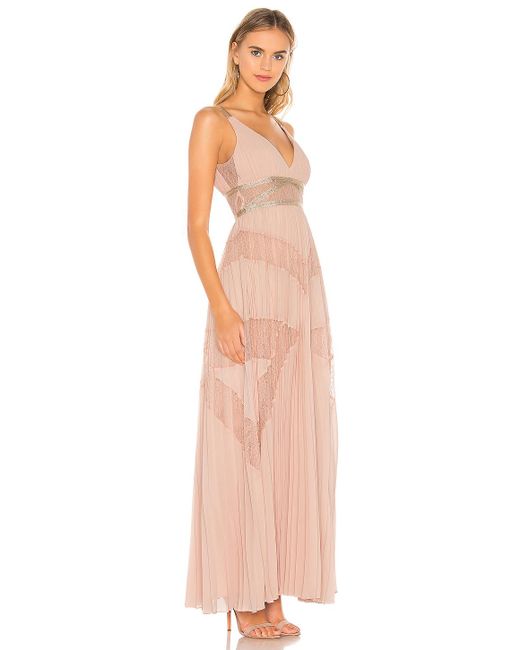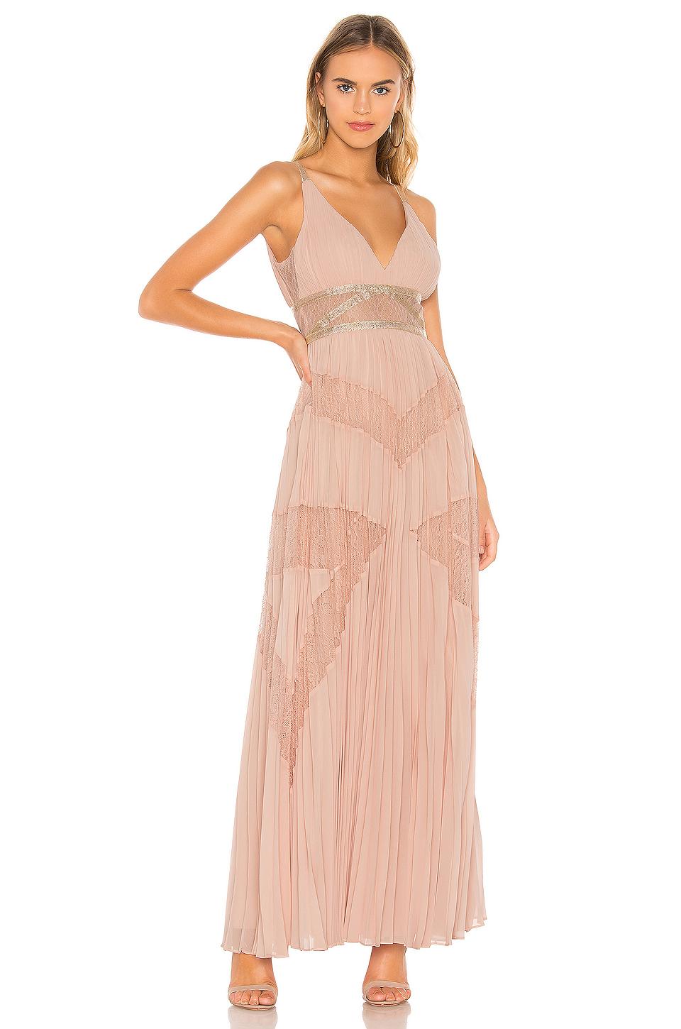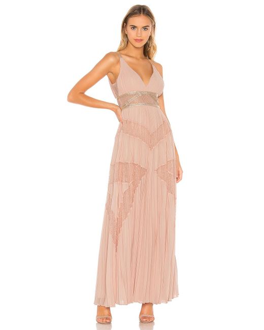 BCBGMAXAZRIA Eve Pleated Gown in Pink. Selbst & Kontrast 1: 100% PolyesterKontrast 2: 100% NylonFutter: 91% Polyester, 9% Spandex. Handwäsche, kalt. Teilfutter. Pleated chiffon fabric with lurex and lace trim. Verdeckter Reißverschluss hinten. Importiert. Farbe: pink