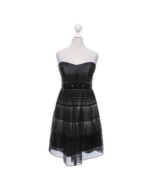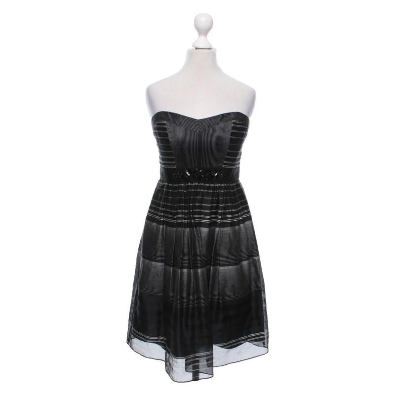 Merkmale / Details:. Obermaterial: 57% Baumwolle, 43% Seide. Innenfutter: 100% Acetat. Herz-Ausschnitt. Schmucksteinbesatz, Vorderseite. Taillenband. Ausgestellter Rock. Nahtverdeckter Reißverschluss und Hakenverschluss, Rückenteil Zustand:. Allgemein: Tragespuren, unauffällig. Vorderseite: Knopfleiste / Verschluss, Hakenverschluss locker / gelöst, unauffällig. Farbe: schwarz