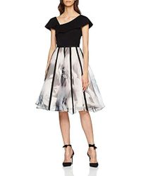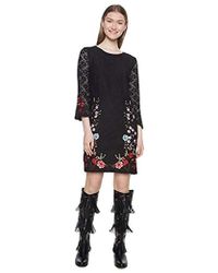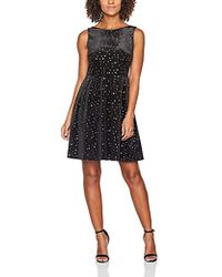 Tuch, Stickerei, Grund einfarbig, Rundhalsausschnitt, ärmellos, ohne Taschen, gefüttert, rückseitiger Verschluss, Reißverschluss, Stretch, Kreisrock. 80% Polyester, 15% Rayon, 5% Elastan. Farbe: schwarz