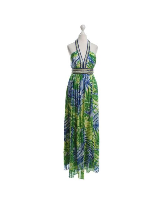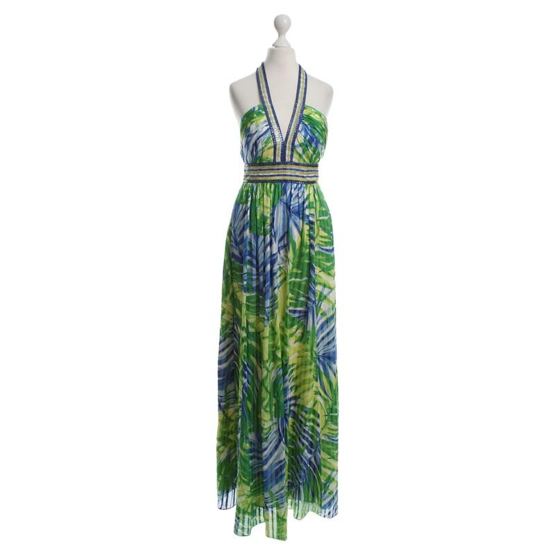 Merkmale / Details:. Saum ausgestellt. Langes Neckholderkleid aus Seide mit Dschungelprint. Falten am Bustier. Am Ausschnitt und uter der Brust Paillettenbesatz. Verdecketer Reißverschluß in hinterer Mitte Zustand:. Insgesamt ist der Zustand sehr gut. Allgemein: Tragespuren, unauffällig. Farbe: grün