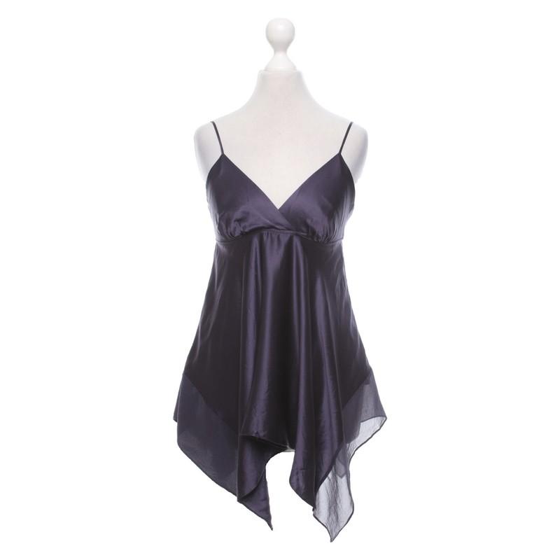 Merkmale / Details:. Obermaterial: 100% Seide. Schimmernde Oberfläche. Träger, verstellbar. Knopfverschluss, Rückenteil. Weiter Schnitt Zustand:. Allgemein: Tragespuren, unauffällig. Farbe: blau