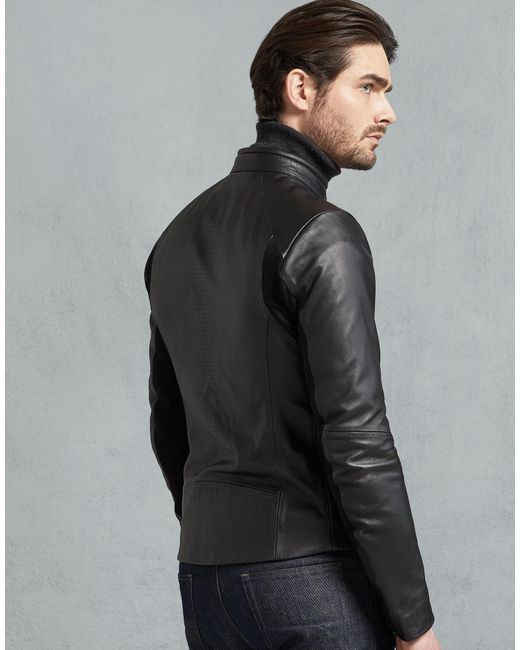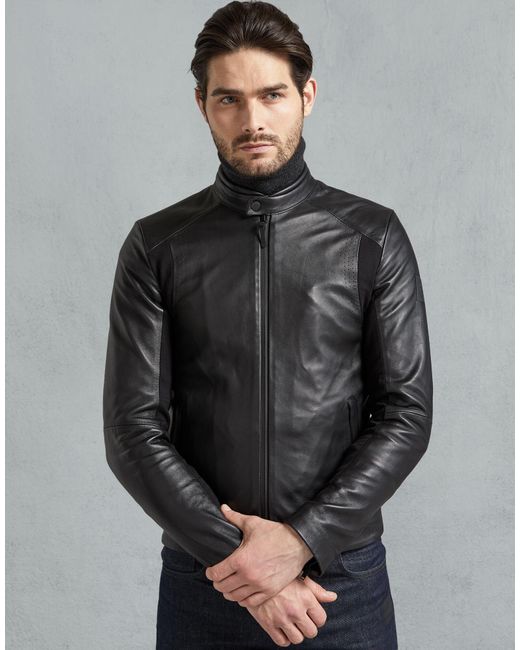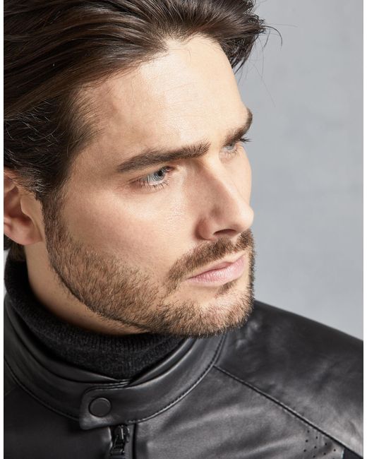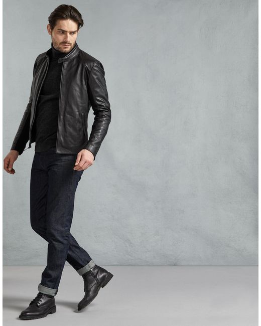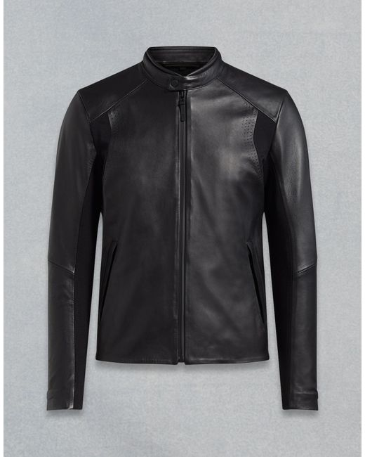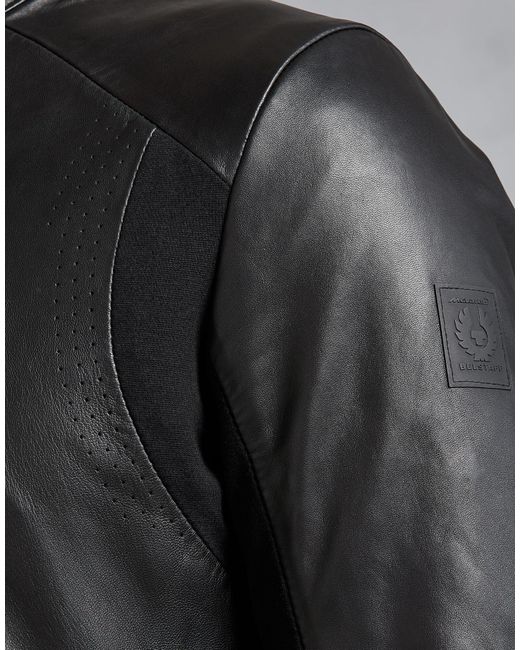 Diese moderne, schwarze Herrenlederjacke im Café Racer-Stil aus geschmeidigem Lammleder bietet höchsten Tragekomfort und krönt die Zusammenarbeit von Belstaff x McLaren. Die ausgefeilte Perforierung reguliert die Temperatur und Jerseyeinsätze unter den Armen sorgen für mehr Bewegungsfreiheit. Die Reißverschlüsse der beiden Seitentaschen sowie der Hauptreißverschluss sind wasserdicht. Letzterer verfügt außerdem über eine Gummilasche mit Belstaff x McLaren-Doppellogo. Zu den weiteren Details zählen der gummierte Belstaff x McLaren-Aufnäher auf dem linken Ärmel und die Ton in Ton gehaltene Kennung am rückseitigen Saum. 100 % Leder, Sekundärstoff: 69 % Viskose, 26 % Polyamid, 5 % Elastan, Futter: 100 % Polyamid. Nicht waschen. Nicht bleichen. Nicht trocknergeeignet. Nicht bügeln. Nicht chemisch reinigen. Nur professionelle Lederreinigung. Farbe: schwarz
