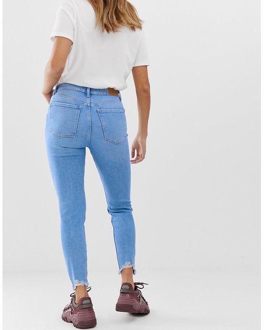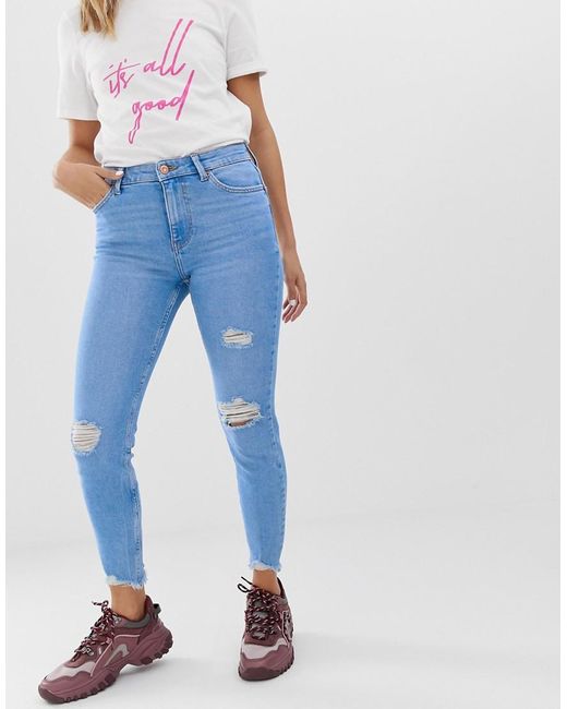 Damen Enge Jeans mit Rissen in Blau