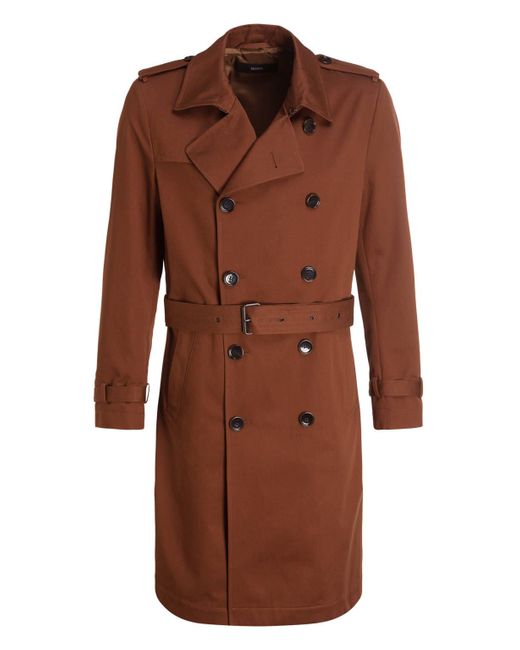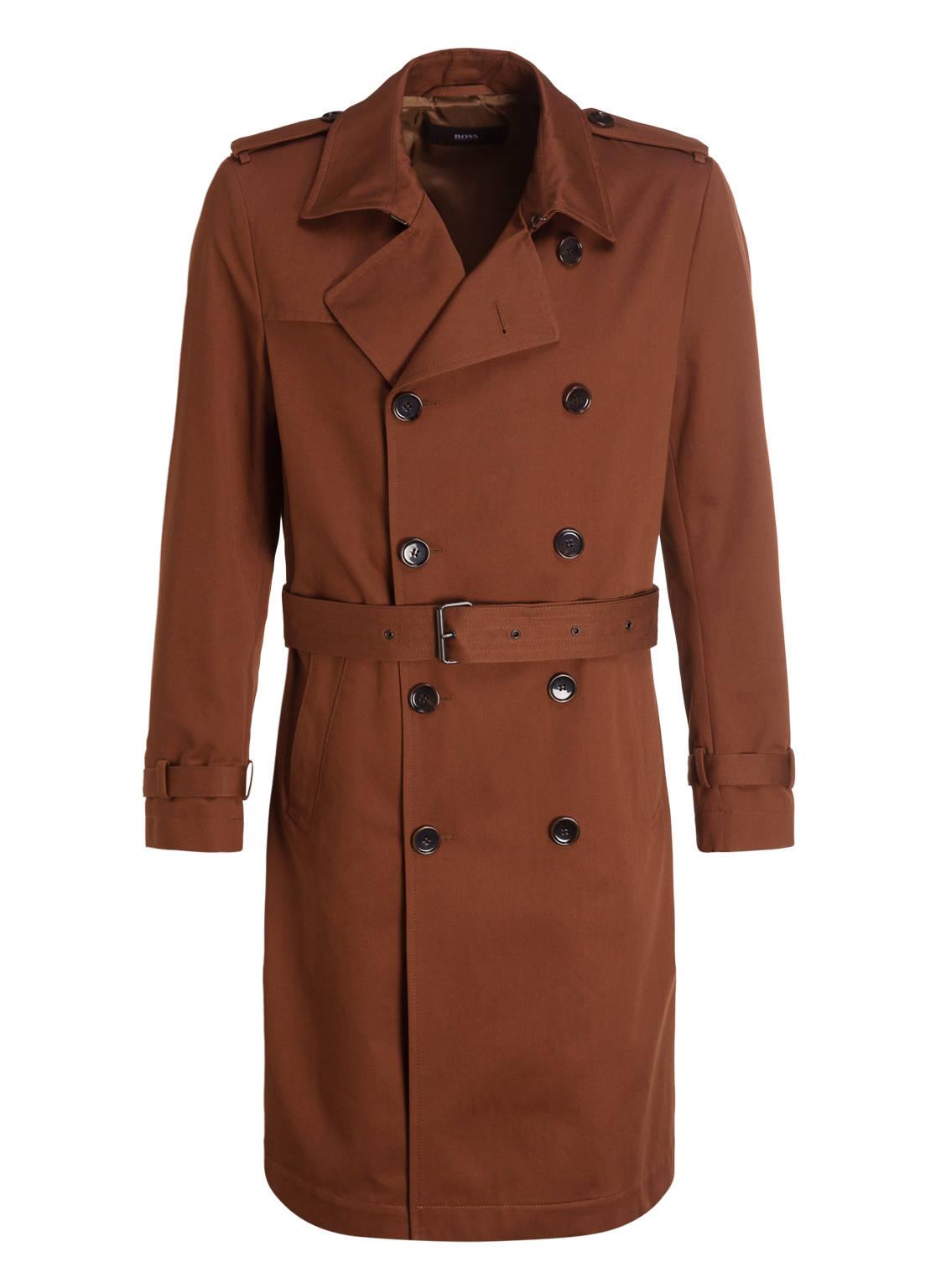 Ihr exklusiver Trend-Begleiter: der Trenchcoat DAN6 von BOSS ist eine bereichernde Erweiterung für Ihre stilvolle Garderobe. Dieses kombinationsstarke Modell überzeugt mit einem elegantem Umlegekragen, Taillengürtel und der Zwei-Reiher-Silhouette. Ein rundum gelungenes Stück! Gerader Schnitt. Umlegekragen. Geknöpfte Schulterriegel. Rückenkoller. Zweireiher. Taillengürtel. Seitliche Eingrifftaschen. Weitenverstellbare Ärmelenden mit Riegelverschluss. Gefütterte Verarbeitung. Gehschlitz in der hinteren Mitte. Reine Baumwolle. Maße bei Größe 48:- Rückenlänge ab Schulter: 109 cm- Schulterbreite: 46 cm- Ärmellänge: 67 cm- Taillenweite: 57 cm. Farbe: braun