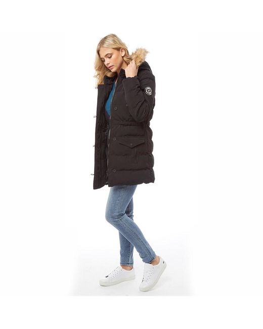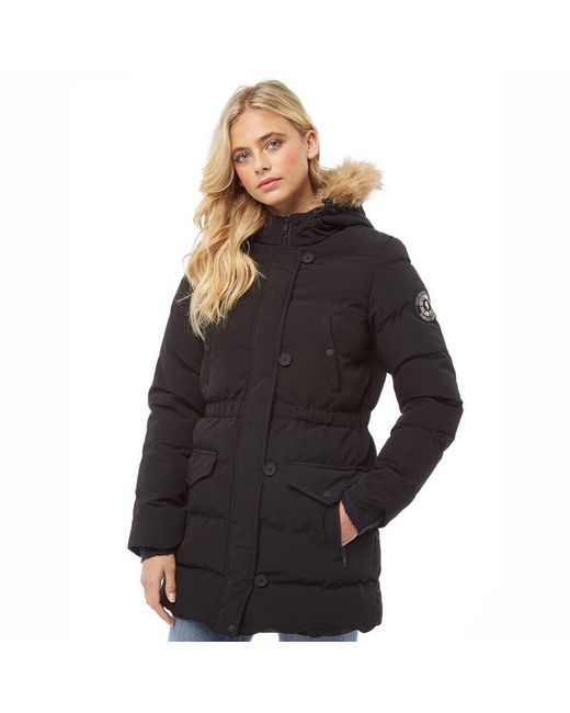 Brave soul lang geschnittene, wattierte jacke mit kapuze mit webpelzbesatz. Reißverschluss mit Windschutzleiste. Farbe: schwarz