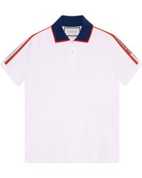 Pikee, Logo, Grund einfarbig, Polokragen, kurze Ärmel, vorderseitiger Verschluss, Knöpfe, ohne Taschen. 100% Baumwolle. Farbe: weiß