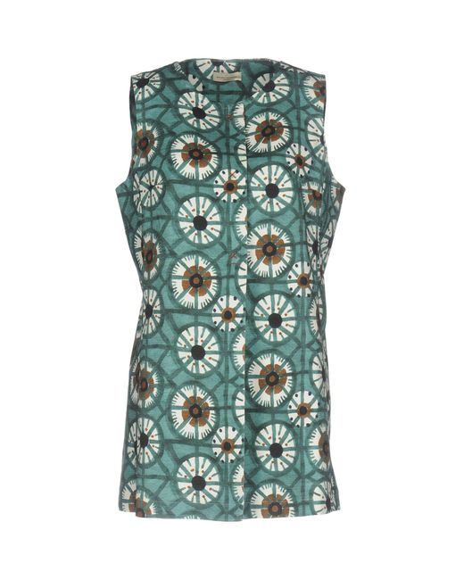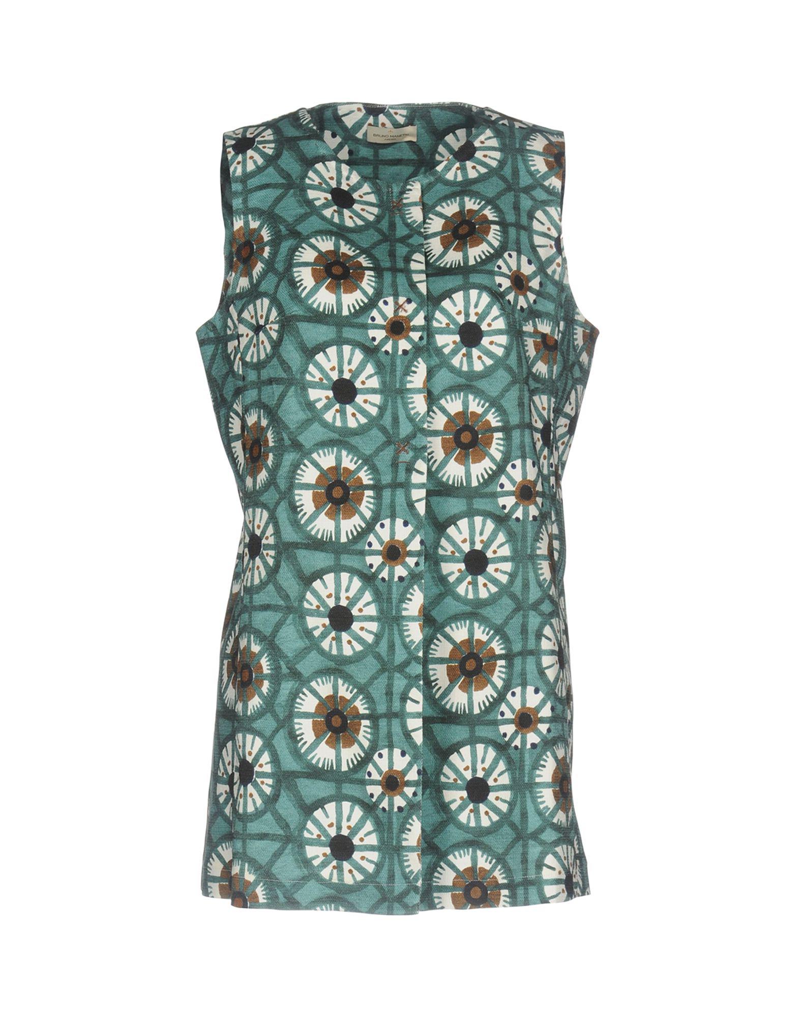 Tuch, ohne Applikationen, geometrisches Muster, Einreiher, Druckknöpfe, Rundhalsausschnitt, viele Taschen, ärmellos, ungefüttert, Stretch, Westen. 98% Baumwolle, 2% Elastan. Farbe: grün