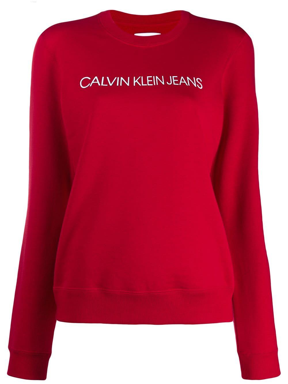 Sweatshirt mit Logo aus Baumwolle von Calvin Klein Jeans. Merkmale: Rundhalsausschnitt, lange Ärmel und mittiger Logo-Print. Farbe: rot