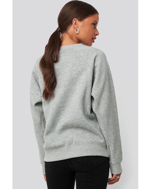 Dieses Sweatshirt hat einen gerippten Rundhalsausschnitt, lange Ärmel mit gerippten Manschetten, ein Markenlogo auf der Brust, Seitentaschen und einen gerippten Saum. Farbe: grau