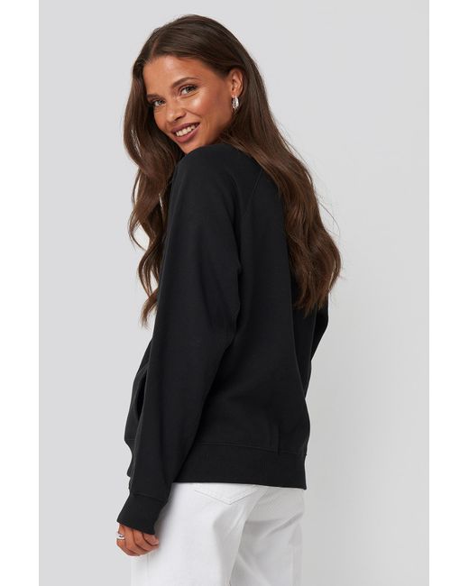 Dieses Sweatshirt hat einen gerippten Rundhalsausschnitt, lange Ärmel mit gerippten Manschetten, ein Markenlogo auf der Brust, Seitentaschen und einen gerippten Saum. Farbe: schwarz