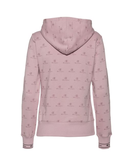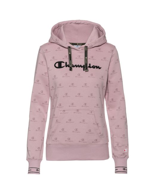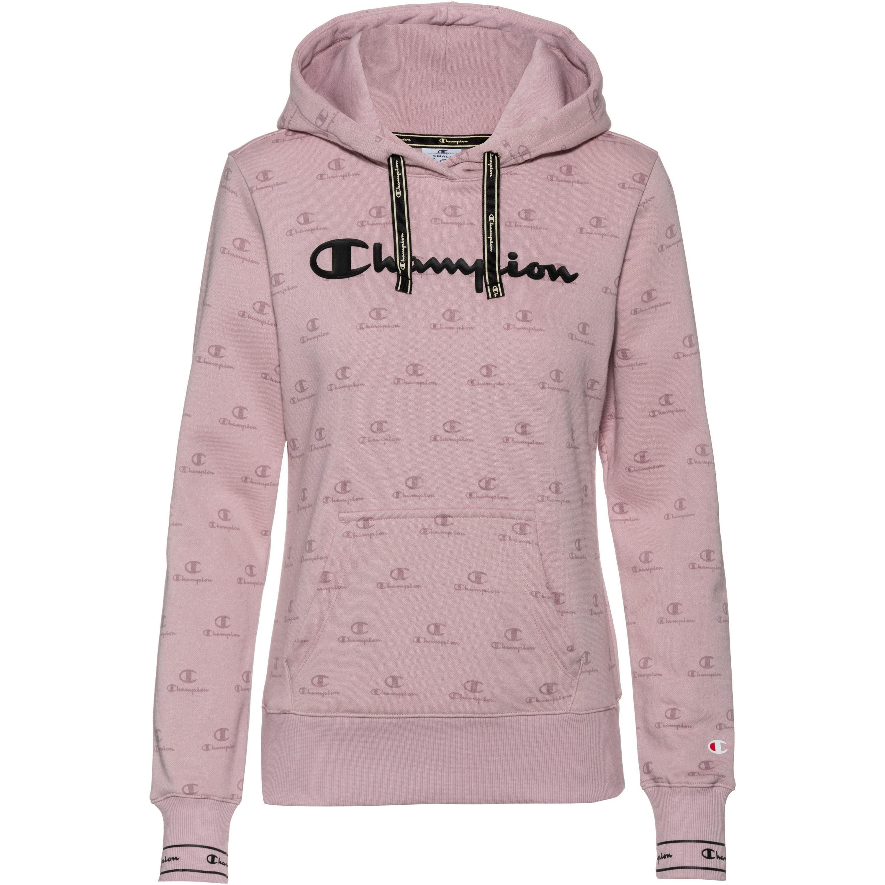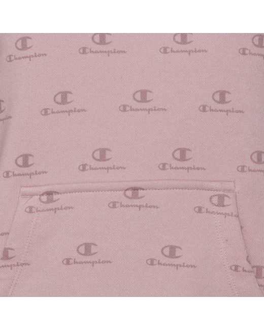 CHAMPION Stylisher Hoodie aus weichem Baumwollmischgewebe mit weitenregulierbarer Kapuze; Kängurutasche; Abschlüsse mit Rippbündchen; gerader Saum; flauschige Innenseite; Allover-Print; Logo-Detail; Material 79% Baumwolle, 21% Polyester. Farbe: lila