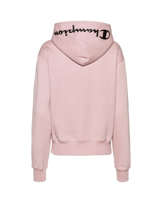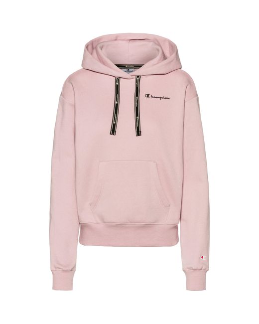 CHAMPION Bequemer Hoodie aus weichem Baumwoll-Mischgewebe; Crop-Länge; verstellbare Kapuze; geräumige Kängurutasche; Markenschriftzug auf der Front; flauschig wärmende Innenseite; Material 79% Baumwolle, 21% Polyester. Farbe: lila