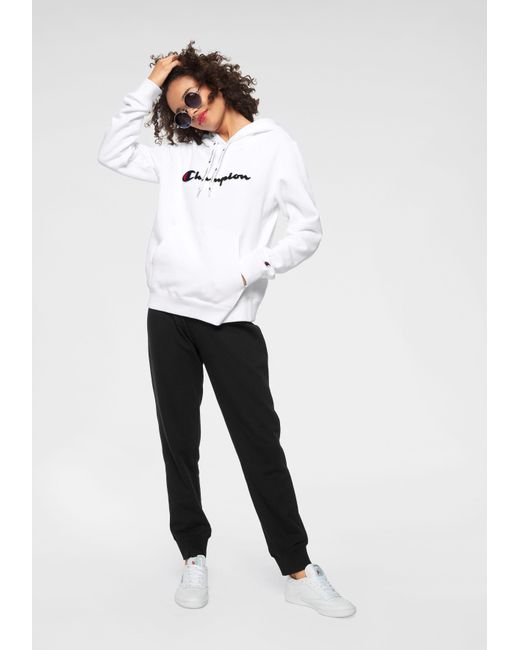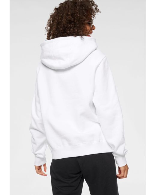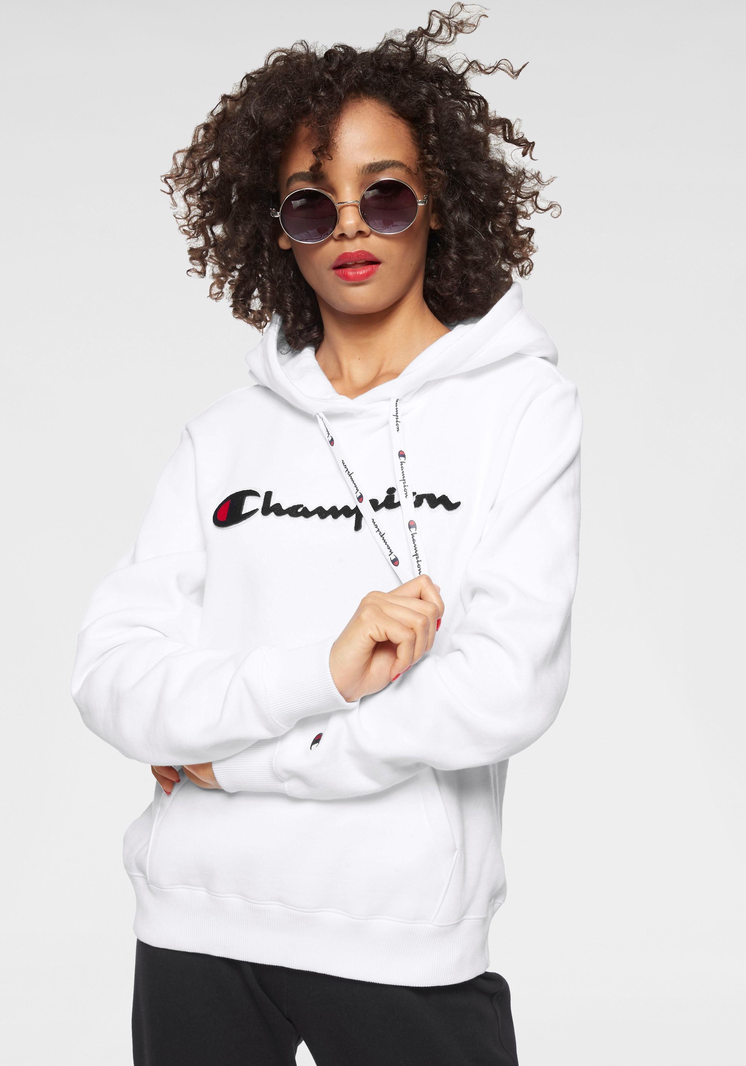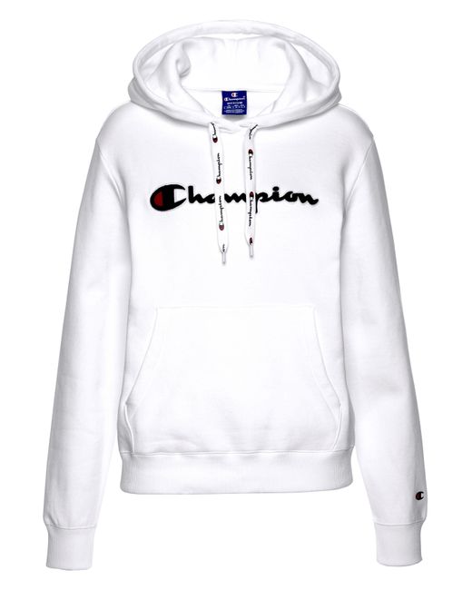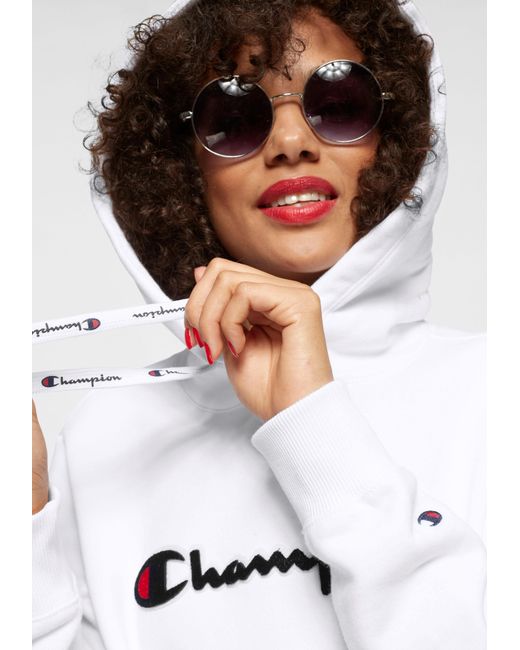 Der Klassiker in neuem Look – der Hoodie von Champion ist ein Must-have dieser Saison. Er braucht nicht mehr als eine Logostickerei vorn und Kapuzenkordeln mit Labelschriftzug, um dir zu gefallen. Klar, die Kängurutasche und das kleine Sticklogo am Ärmel gehören natürlich ebenso zum Paket wie elastische Rippbündchen für den guten Sitz des Kapuzenpullovers. Das Sweatbasic mit dem hohen Tragekomfort ist ein wahres Kombiwunder: Ob mit Jeans oder Shorts, mit Jogpants oder Rock, der Hoodie von Champion verleiht vielen Styles den sportlichen Kick. Farbe: weiß