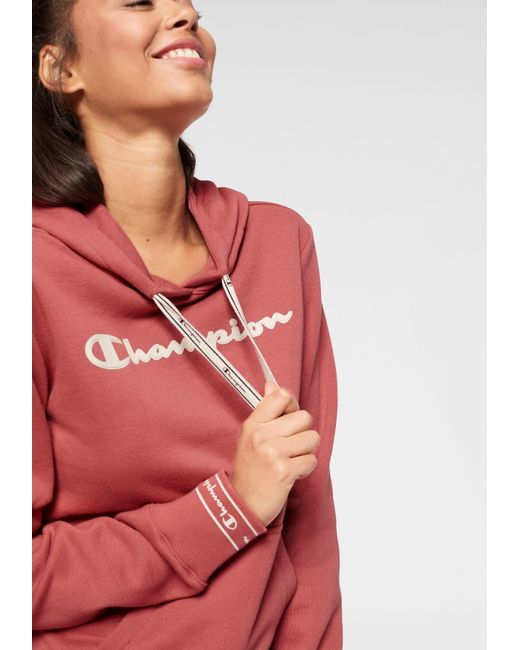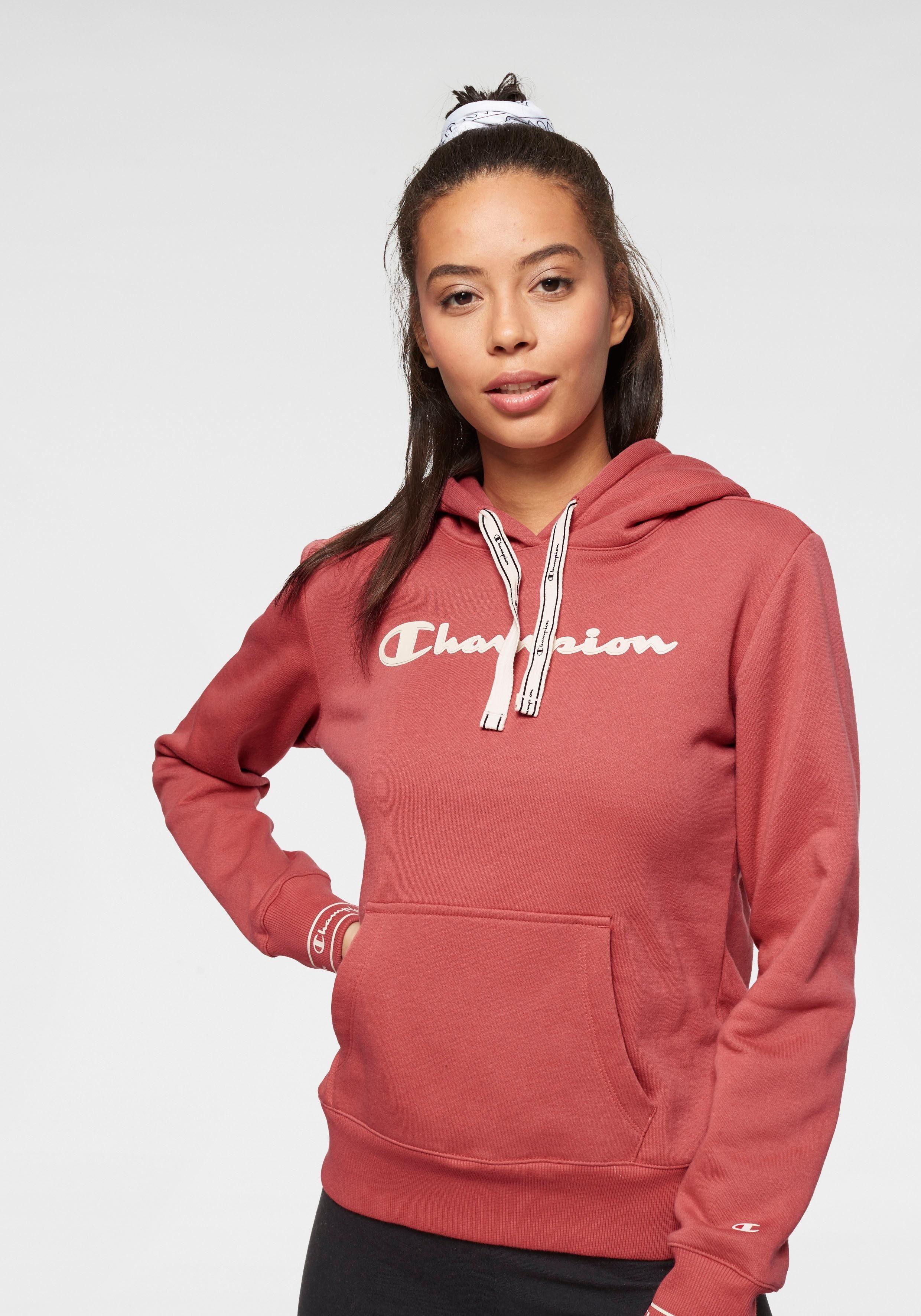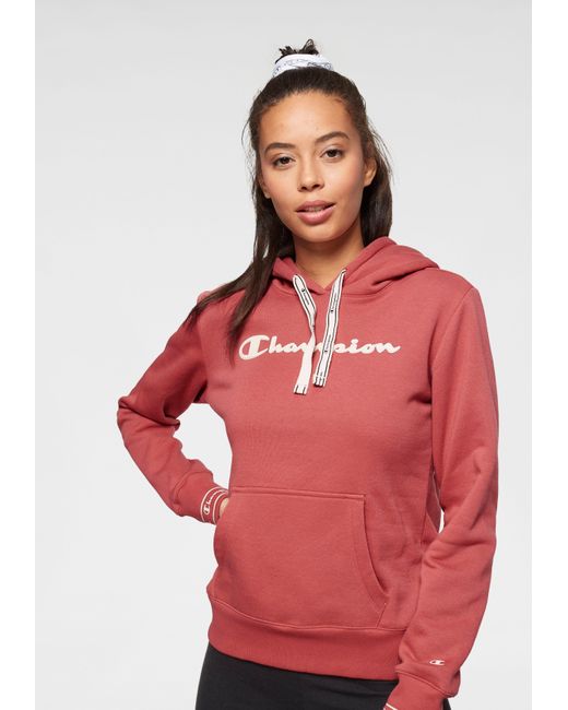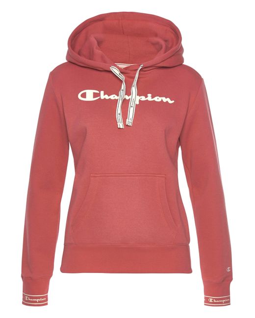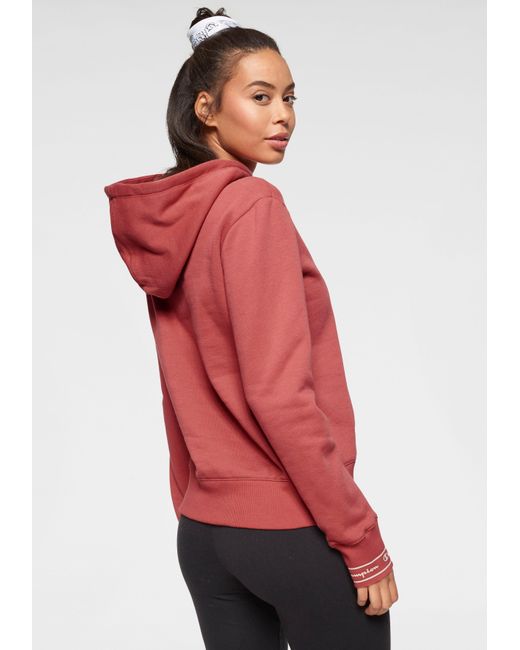 We like it casual: Das sportive Kapuzensweatshirt von Champion wird garantiert dein treuester Alltime-Favorite! Das Keypiece präsentiert sich im markentypischen Design, das durch den aufgedruckten Logoschriftzug auf der Brust unterstrichen wird. Die tonal gefütterte Kapuze mit breitem Kordelzug-Logoband, die Kängurutasche sowie die breiten Rippbündchen, an den Ärmel mit Logoschriftzügen prägen das Design des Hoodies und schenken dir einen coolen Look. Gleichzeitig versprechen dir die weiche Sweatqualität und die legere Silhouette einen ausgezeichneten Tragekomfort und lassen dich rundum wohlfühlen. Cool zu Sweatpants oder Tights. Tipp: Für einen angesagten Streetstyle trägst du dazu einen luftigen Midi-Rock! Mit dem Kapuzensweatshirt von Champion kreierst im Handumdrehen du sportive Trendlooks. Farbe: rot