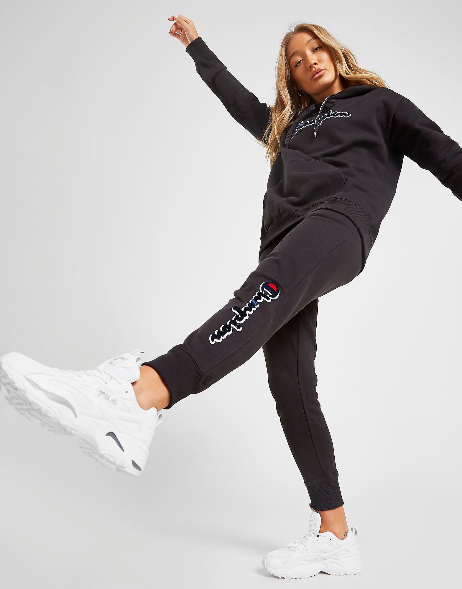 Exklusiv bei JD. Diese Velvet Logo Jogginghose von Champion ist ein lässiges Must-Have. Farblich in Schwarz gehalten, wird diese Damen Jogginghose dank weicher Baumwolle und Regular Fit besonders bequem. Die gerippten Bündchen garantieren den optimalen Fit. Das Champion Logo aus Samt setzt den finalen Akzent. Unser Model ist 172cm groß und trägt eine Größe S. Farbe: schwarz