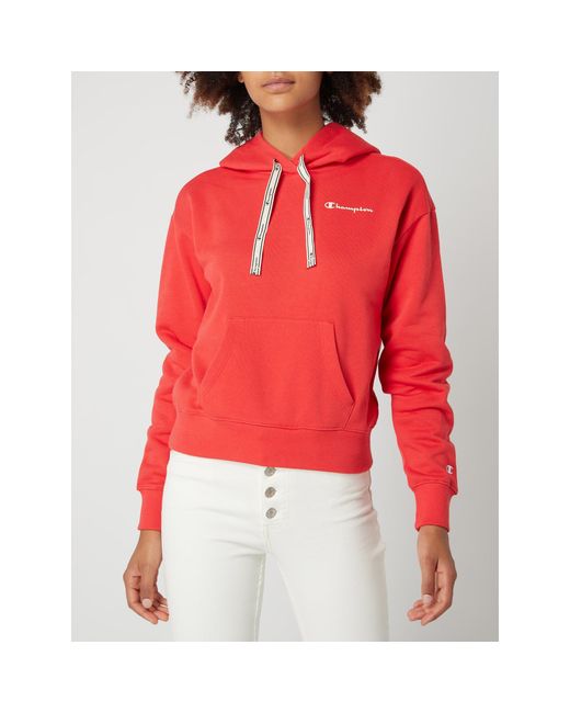 Der Hoodie von Champion ist aus einer Baumwollmischung gefertigt und regulär geschnitten. Er kommt mit gummierten Logo-Prints, Känguru-Tasche und Rippenbündchen. Hoodie von Champion, Baumwollmischung , Regular Fit , Kapuze mit Logo-Print und Kordelzug , Logo-Print auf Brusthöhe und Ärmel, Känguru-Tasche , Überschnittene Schultern , Rippenbündchen an Ärmeln und Saum , Rückenlänge bei Größe S: 52 c. Farbe: rot