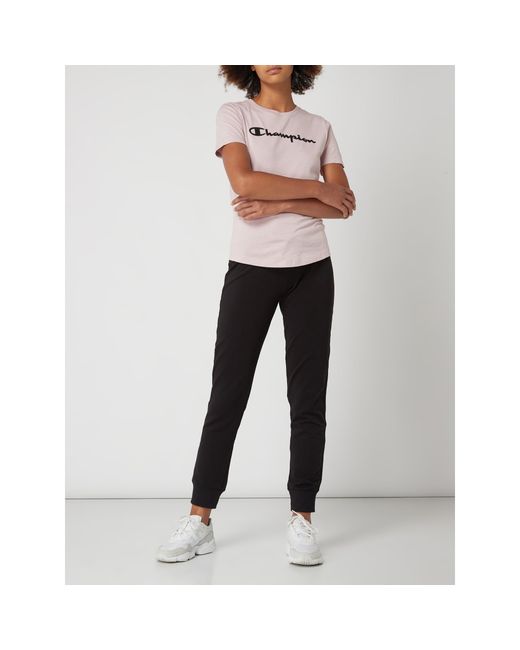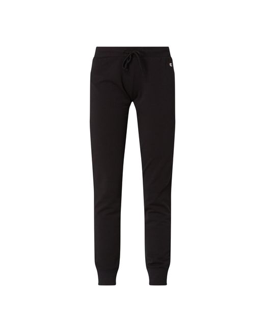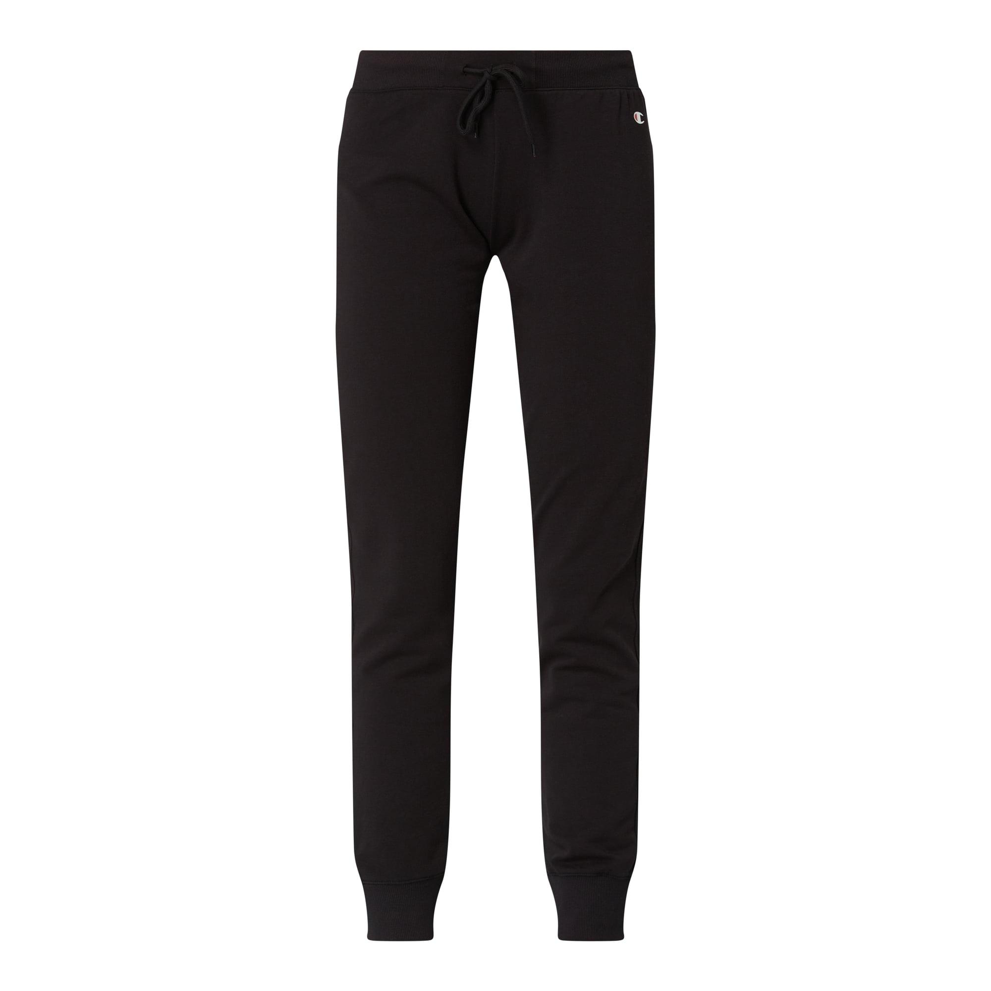 Die Sweatpants von Champion ist aus einem Baumwoll-Elasthan-Mix gefertigt. Sie kommt im Regular Fit mit kleinem Logo-Print und elastischen Bündchen an den Beinabschlüssen. Die Passform kaschiert breite Hüften und kräftige Oberschenkel. Sweatpants von Champion, Baumwoll-Elasthan-Mix , Regular Fit , Elastischer Bund mit Tunnelzug , Kleiner, gummierter Logo-Print , Beinabschluss mit Rippenbündchen, Innenbeinlänge bei Größe S: 74,5 c. Farbe: schwarz