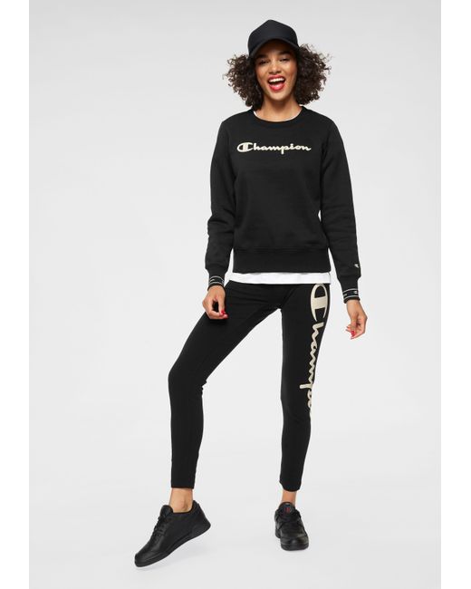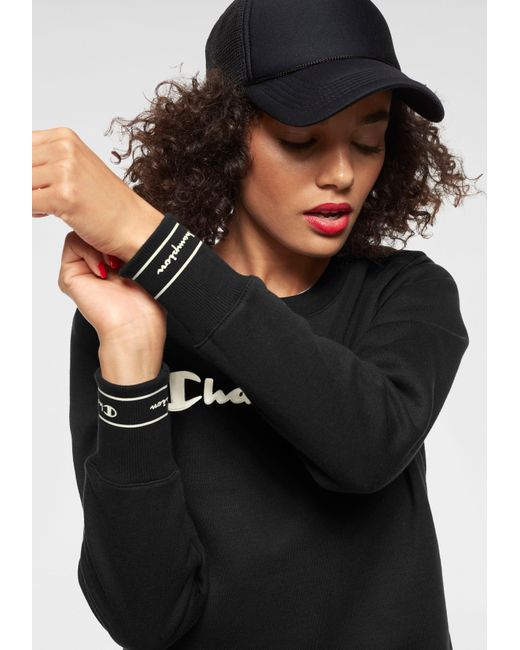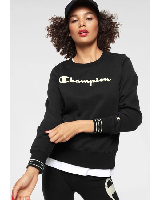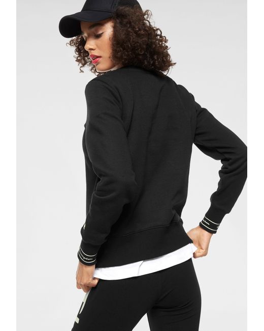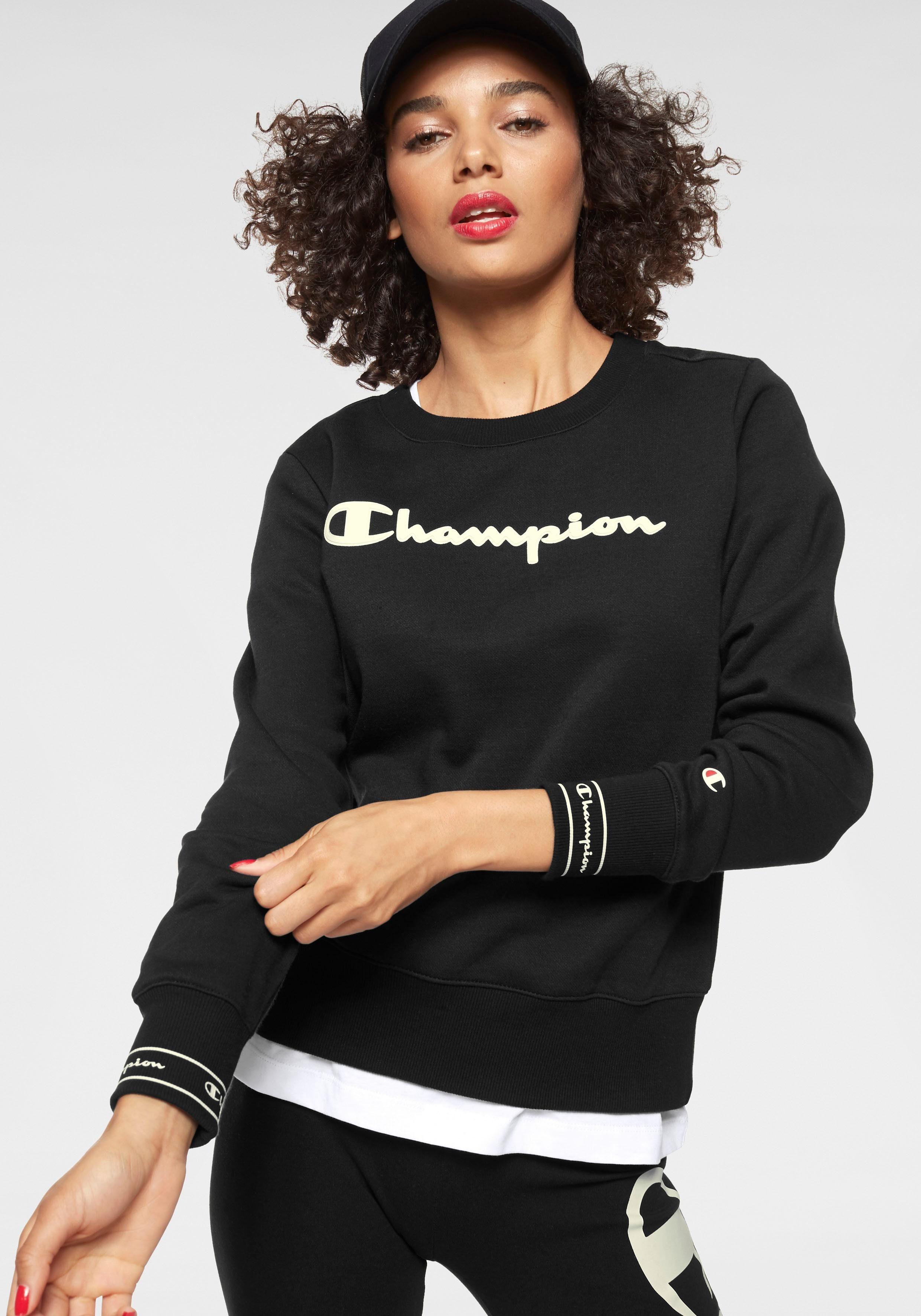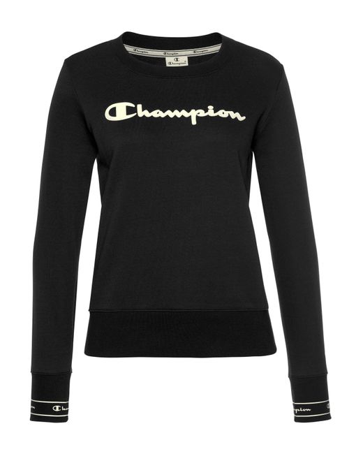 Basics kann Frau nie genug haben – das Sweatshirt von Champion setzt auf klare Linie, lässiges Design und einen coolen, sportlichen Logodruck vorn und auf den Rippbündchen an den Ärmeln. Seine leicht taillierte Form verleiht dem Sweater femininen Charme. Der klassische Rundhalsausschnitt und der breite Saum runden den Style gelungen ab. Sein Tragekomfort ist der Sweatqualität zu verdanken. Hierzu passt alles: Tights, Jogpants, Jeans oder Stoffhosen, du kannst kreativ werden. Das Sweatshirt von Champion – dein Allrounder für sportliche Freizeit-Looks! Farbe: schwarz