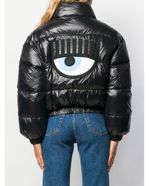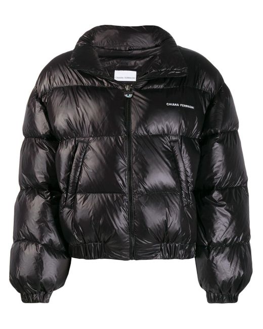 Cropped-Daunenjacke aus Daunen von Chiara Ferragni. Merkmale: Reißverschluss an der Vorderseite, elastischer Bund und seitliche Eingriffstaschen. Farbe: schwarz