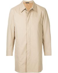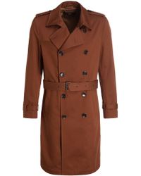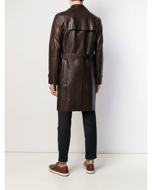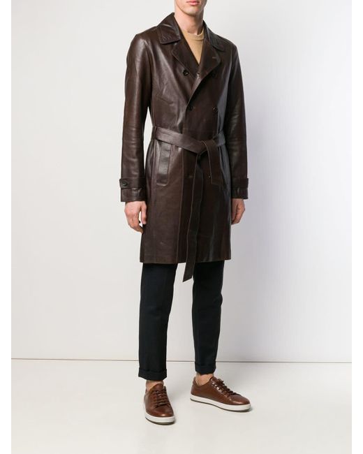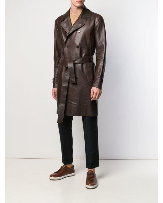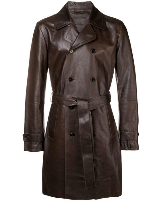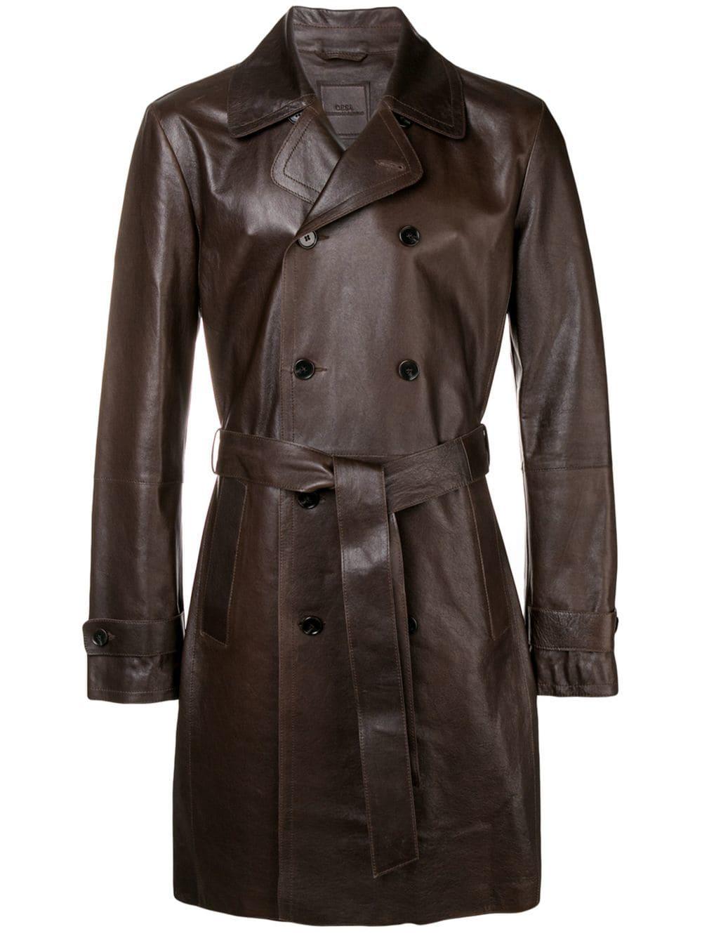 Doppelreihiger Mantel von Desa 1972. Merkmale: lange Ärmel, Taillengürtel, fallendes Revers, seitliche Eingriffstaschen und Schlitz am hinteren Saum. Farbe: braun
