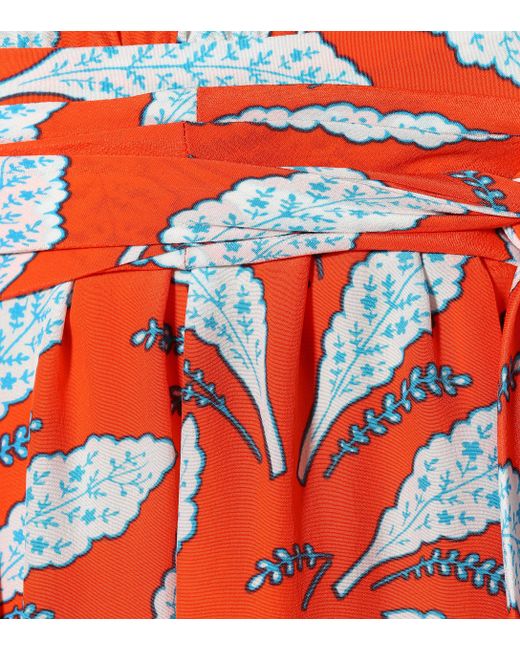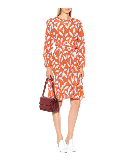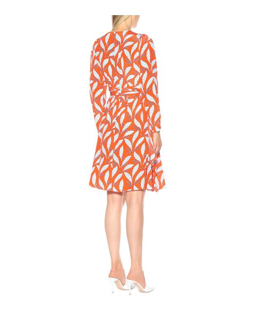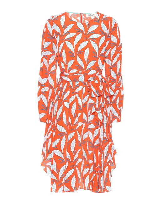 Das langärmlige Kleid von Diane von Furstenberg ist aus reiner Seide gefertigt und überzeugt mit seinem Blätter-Print auf rotem Untergrund. Farbe: rot