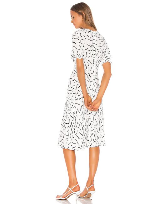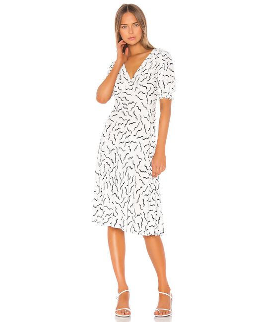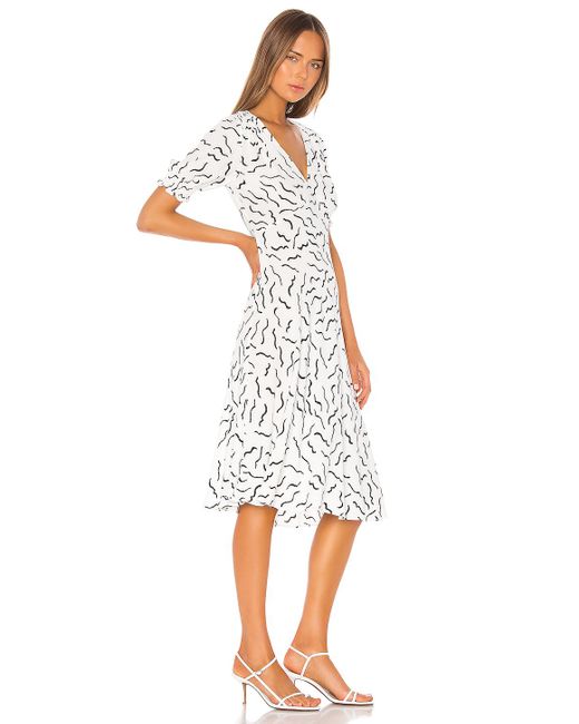 Diane von Furstenberg Jemma Dress in White. 100% Viskose. Chemische Reinigung. Ungefüttert. Raffung an der Schulter. Elastische Ärmelöffnungen. Verdeckter Reißverschluss hinten. Importiert. Farbe: weiß