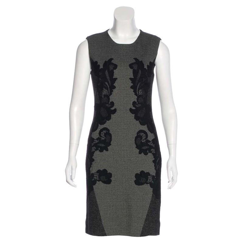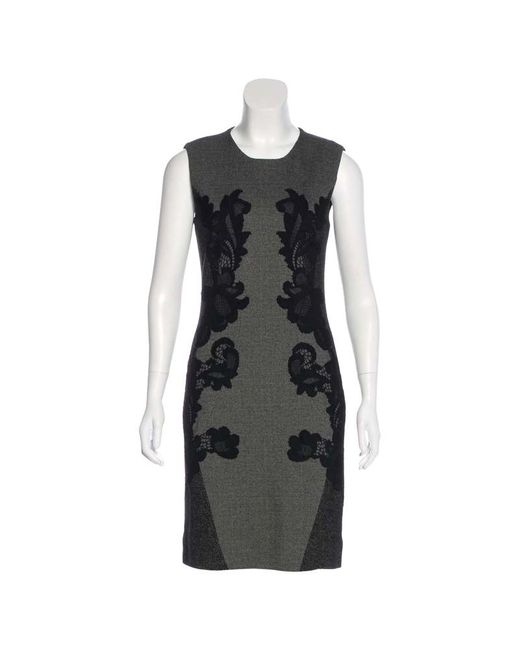 Diane von Furstenberg. Pentra. Knielanges Jacquardkleid mit Mini-Webmuster, durchgehendem Tweedmuster und verdecktem Reißverschluss hinten. Material: 35% Wolle, 35% Acryl, 30% Nylon; Combo 92% Nylon, 8% Spandex; Futter 82% Polyester, 18% Elasthan US-Größe 8, bitte überprüfen Sie die Maße, da die Designergrößen etwas variieren können Achsel zu Achsel 48 cm, Taille 39 cm, Länge 98 cm. Farbe: grau
