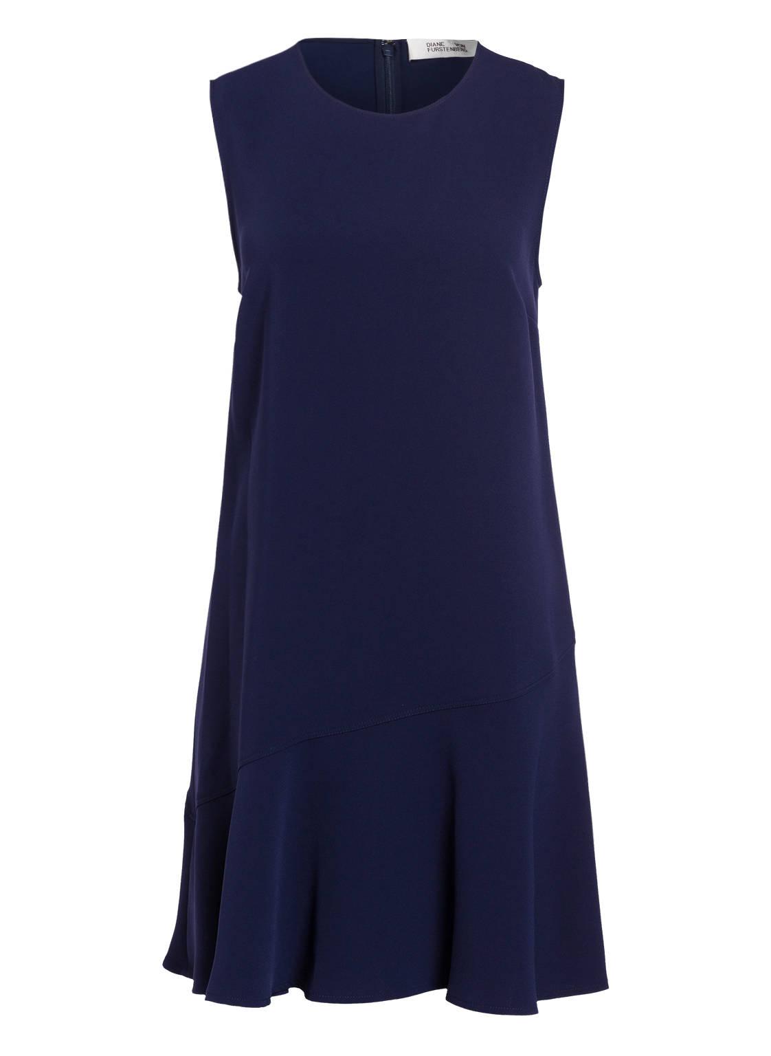 Clean und edel präsentiert sich das Kleid ALYSON von DIANE VON FURSTENBERG. Die geradlinige Schnittführung wird von einem sanft schwingenden, schräg verlaufenden Volantbesatz am Saum ergänzt. Ein nahtfeiner Reißverschluss schließt das ärmellose Piece in der hinteren Mitte ab. Kombinieren Sie das Modell mit knalligen Accessoires und glänzenden Pumps - für einen zeitlos eleganten Look! A-Linie. Rundhalsausschnitt. Rmellos. Schließt mit nahtfeinem Reißverschluss in der hinteren Mitte. Schräg verlaufender Volantbesatz am Saum. Ungefütterte Verarbeitung. Maße bei Größe 36:- Gesamtlänge ab Schulter: 90 cm- Brustweite: 88 cm- Taillenweite: 96 cm. Farbe: blau