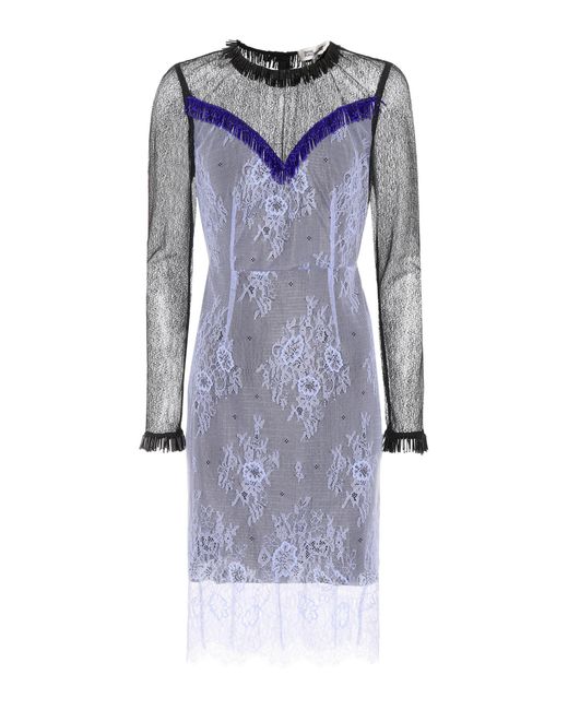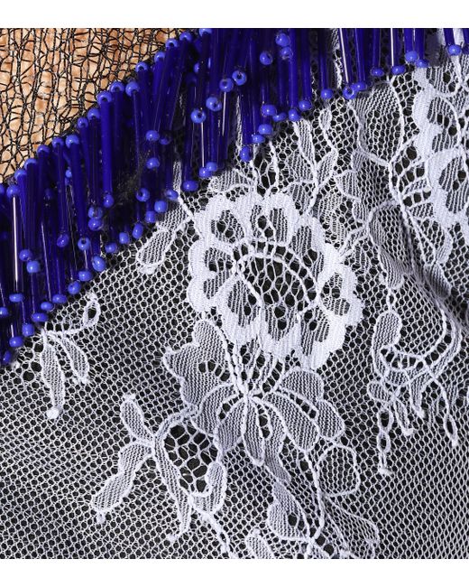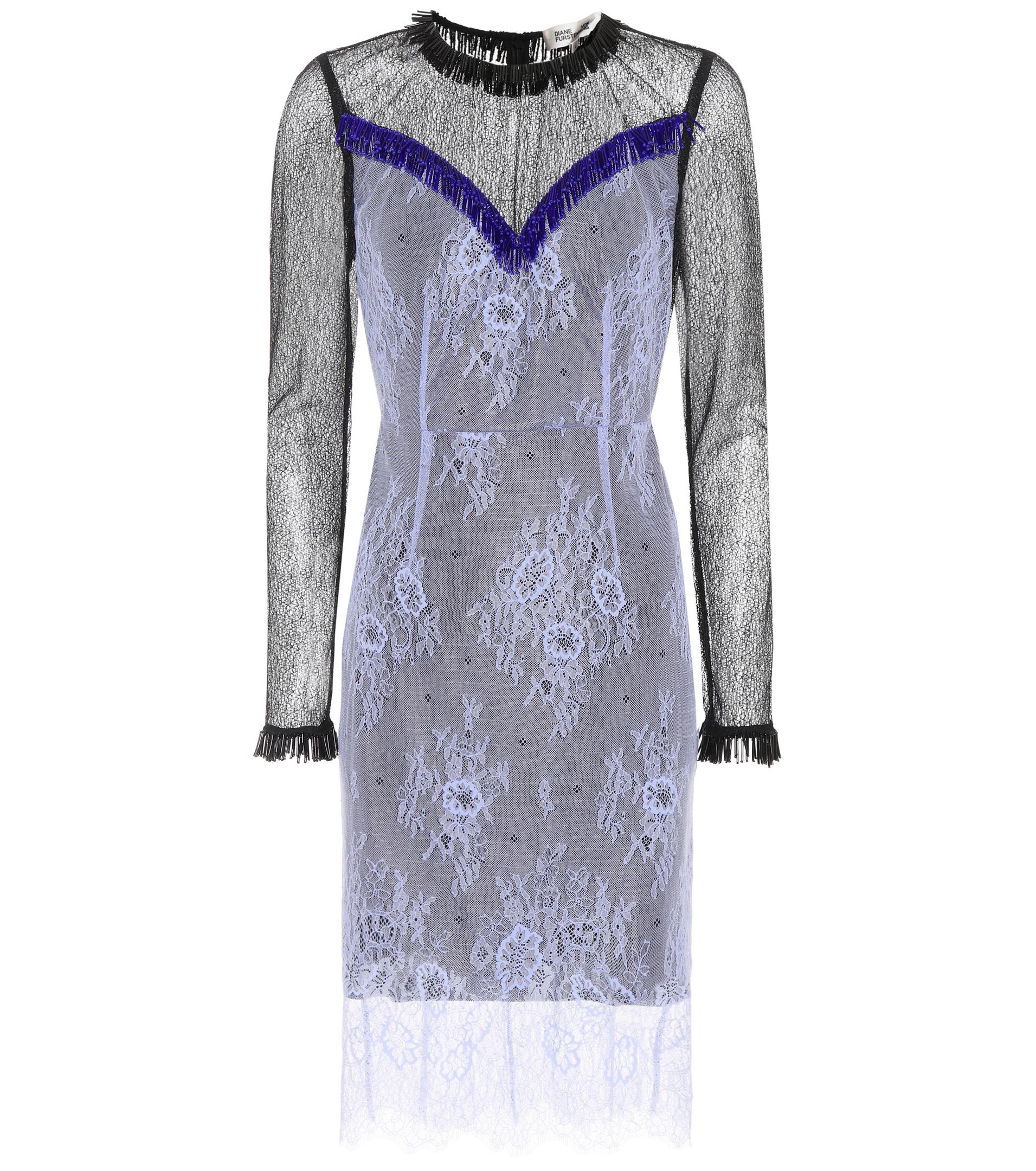 Zarte Chantilly-Spitze, perlenverzierte Fransen und ungesäumte Kanten verleihen diesem Kleid von Diane von Furstenberg eine romantische aber dennoch moderne Note. Farbe: blau