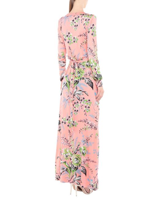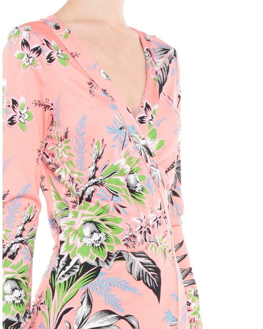 Jersey, ohne Applikationen, Blumenmuster, tiefer Ausschnitt, lange Ärmel, ohne Taschen, vorderseitiger Verschluss, ungefüttert, Wickelverschluss, Kleid. 100% Seide. Farbe: pink