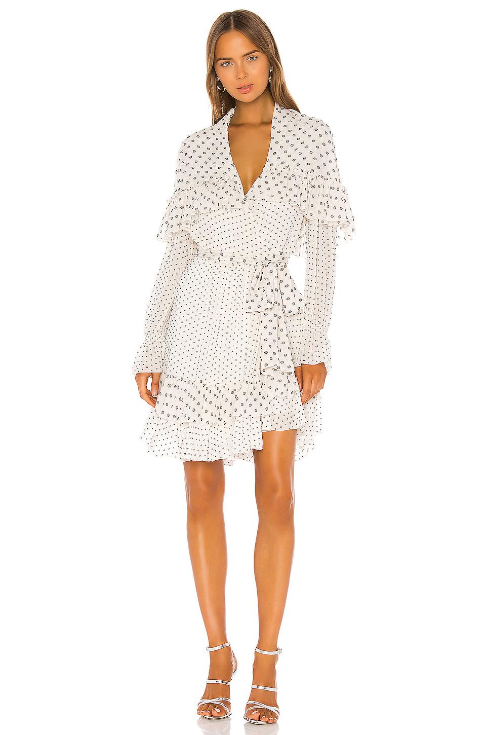 Diane von Furstenberg Martina Dress in White. Hauptmaterial: 88% Viskose, 12% PolyesterFutter: 100% Polyester. Chemische Reinigung. Durchgehend gefüttert. Fil coupe georgette fabric. Wickelform mit Schleife. Open back with flounce overlay. Importiert. Farbe: weiß